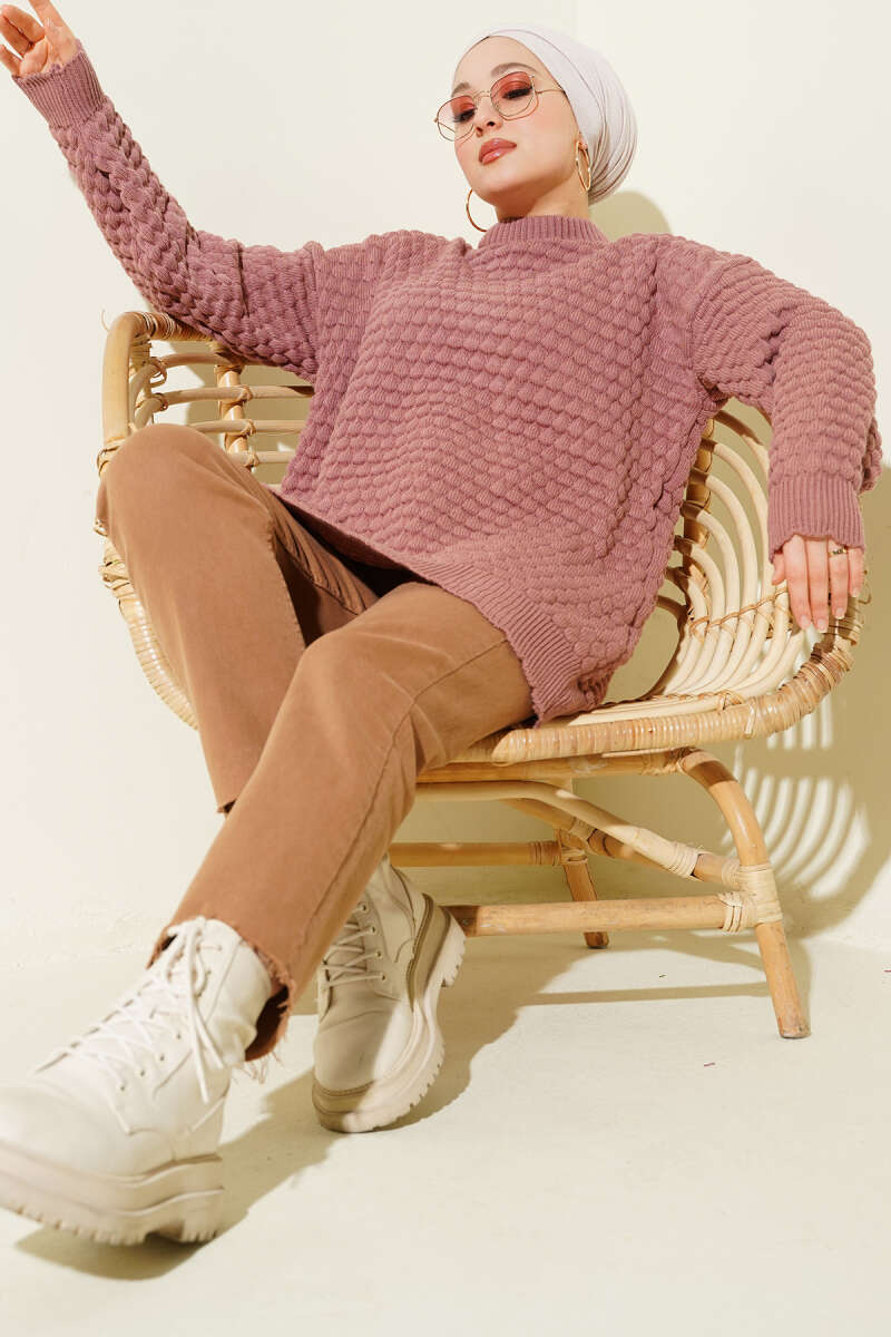 Pirinç Örgü Düşük Omuz Triko Tunik Füme
