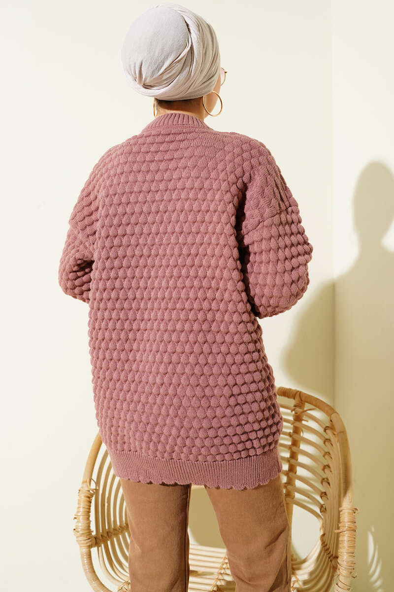 Popit Kabartmalı Triko Tunik Yağ Yeşili
