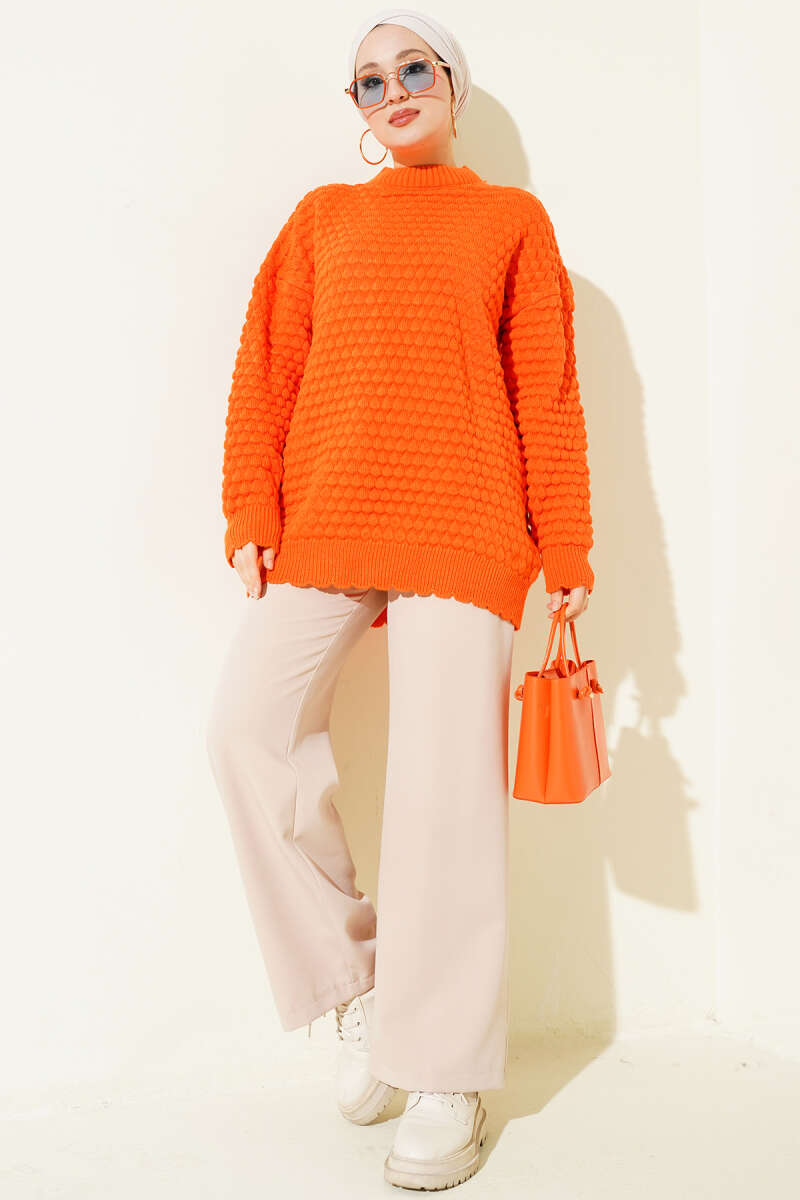 Popit Kabartmalı Triko Tunik Gül Kurusu