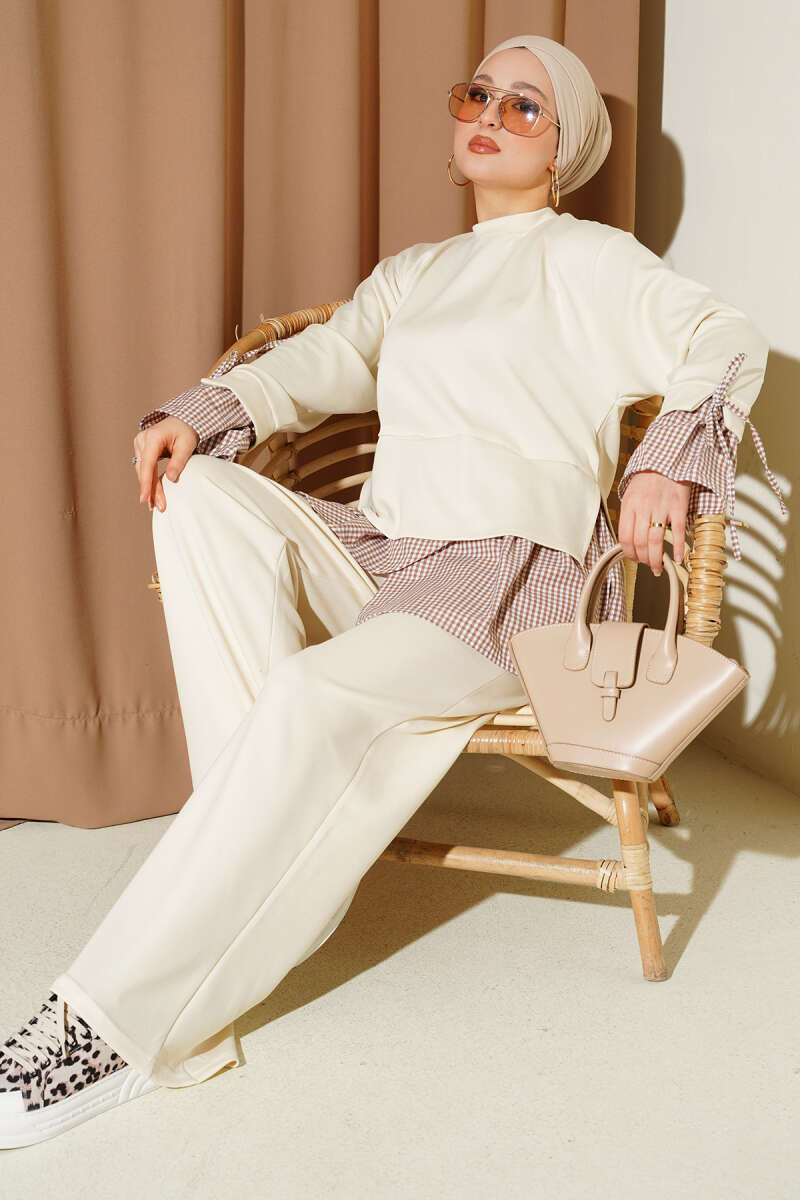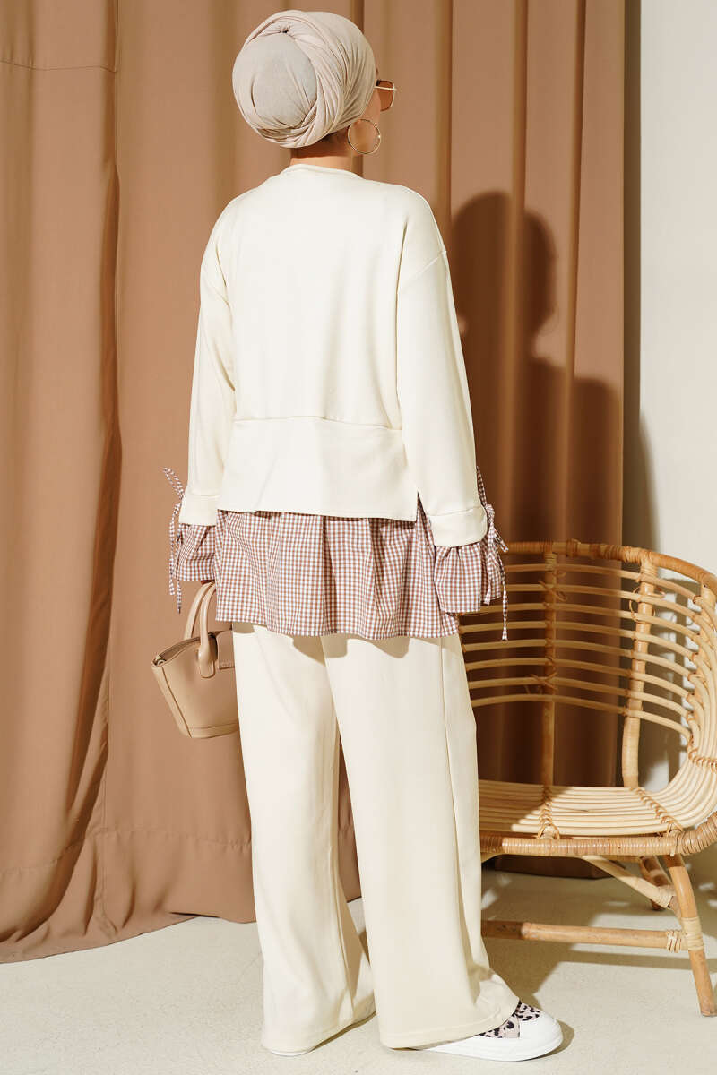 Bel Tünelli Boncuklu Scuba İkili Takım Vizon