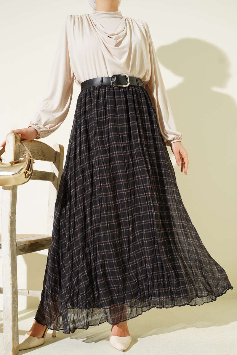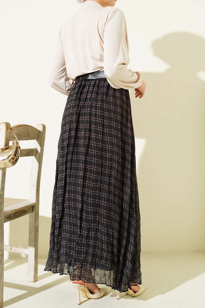 Pötikare Kemerli Kırışık Şifon Etek Haki
