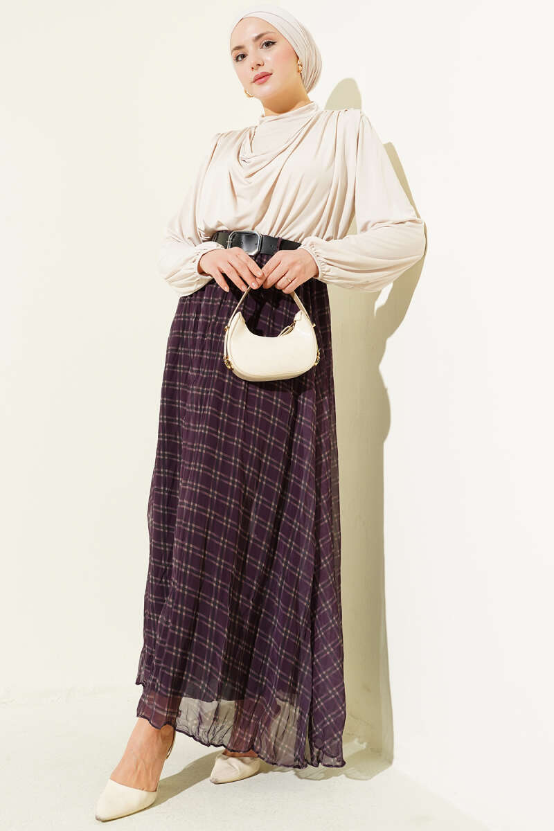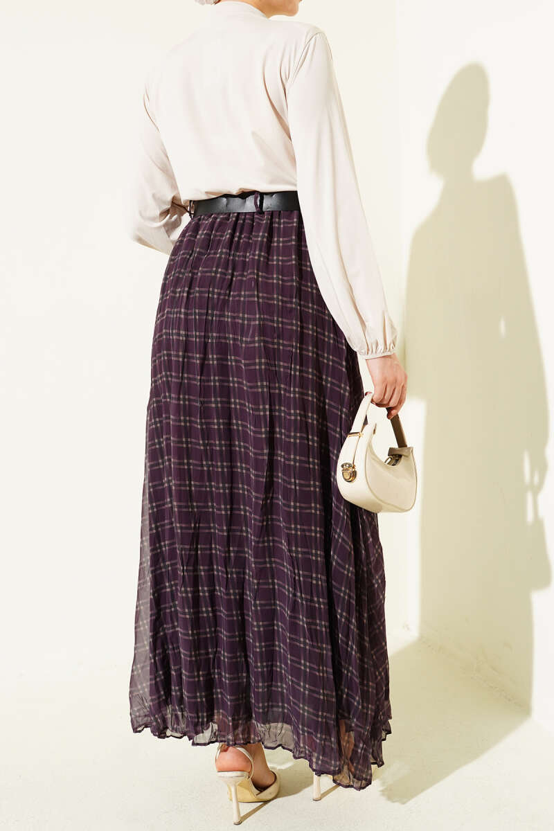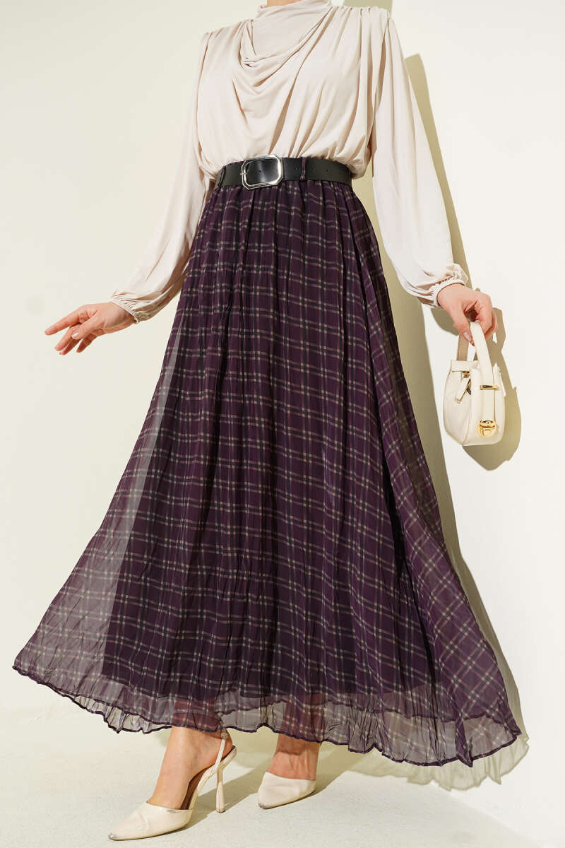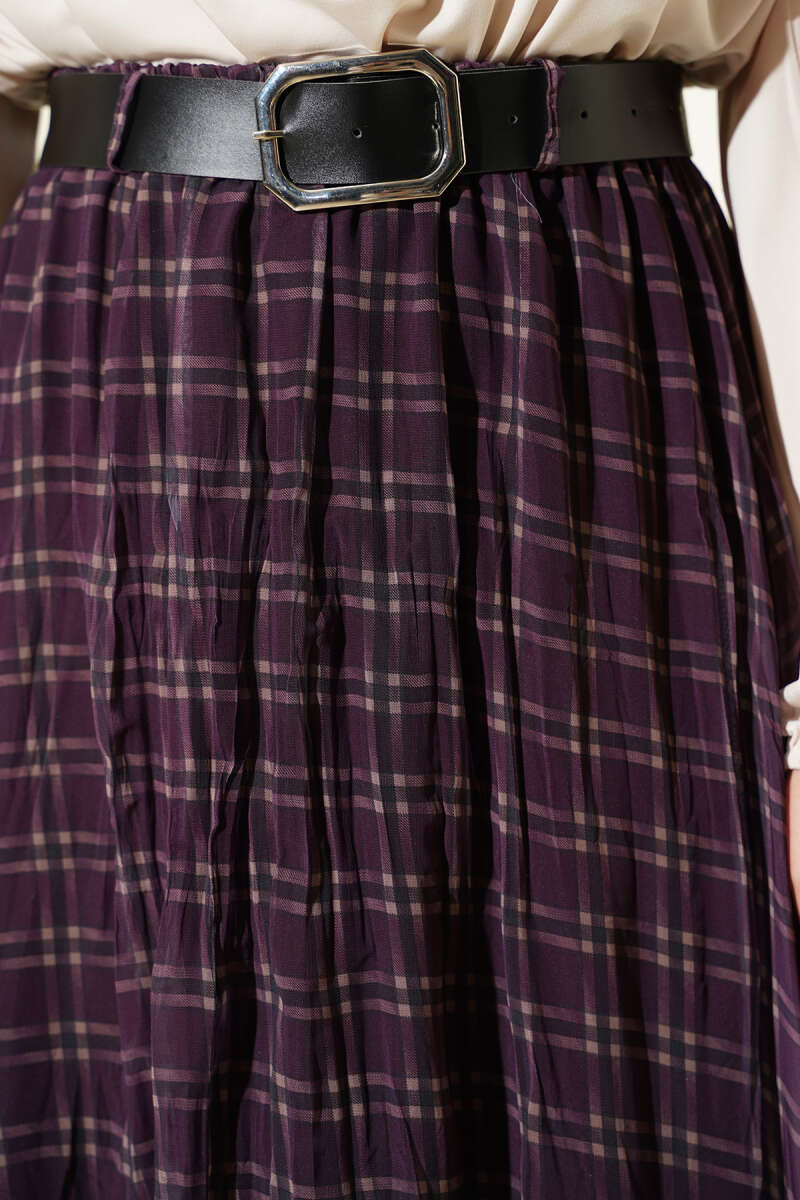 Pötikare Kemerli Kırışık Şifon Etek Mürdüm