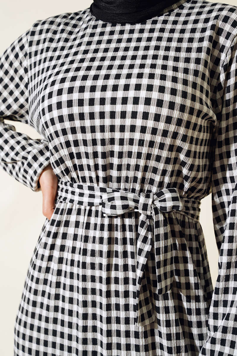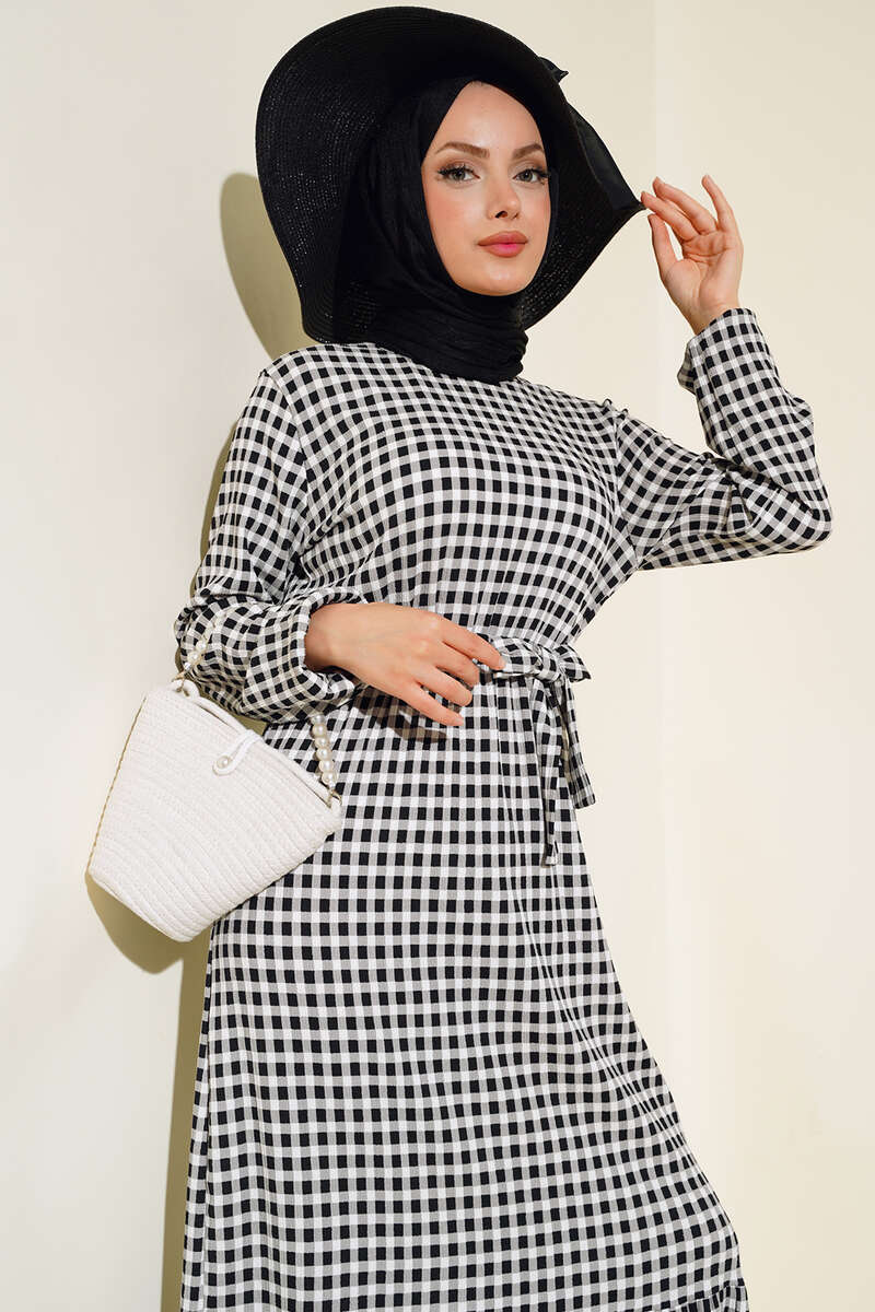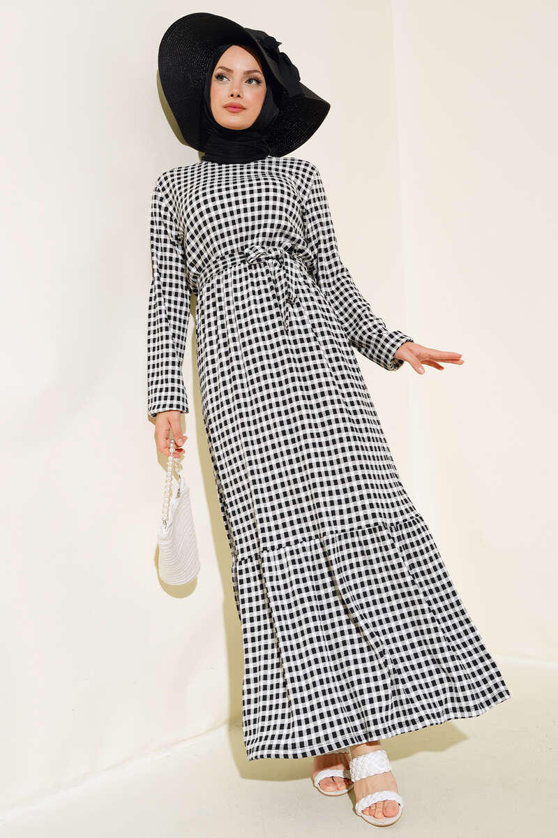 Yeni sezon elbisemiz harika tasarımıyla sizler için geldi. Pötikare desenliye şıklık kazanan elbisemizi çok seveceksiniz. Elbisemizin kol bilekleri ve beli lastiklidir. Kat modeldir. Elbisemizin kendi kumaşından kuşağı vardır. Astarsızdır. Yaz ve bahar aylarının vazgeçilmezi olacaktır.