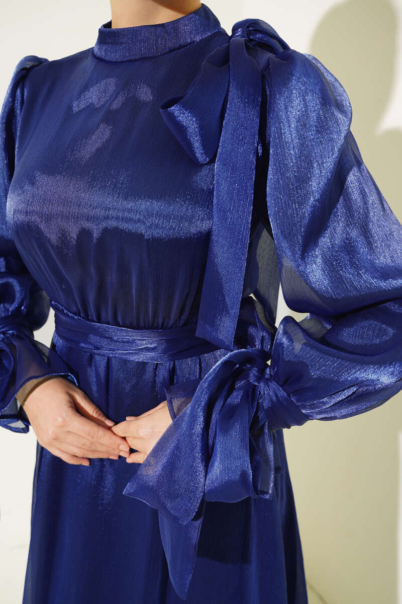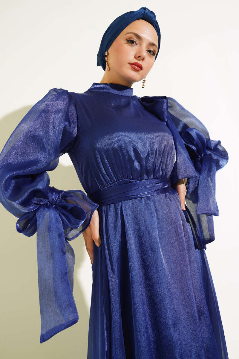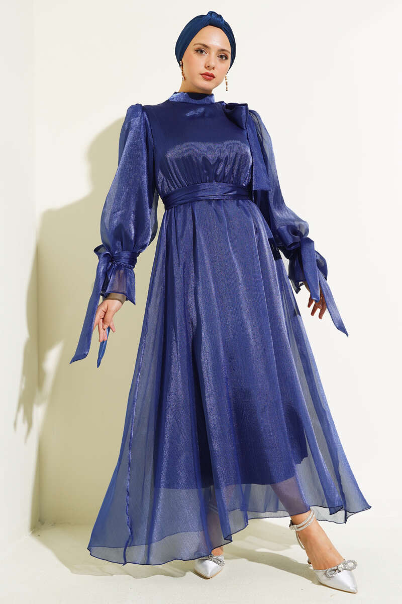Omuz Pelerin Detaylı Abiye Elbise Lacivert
