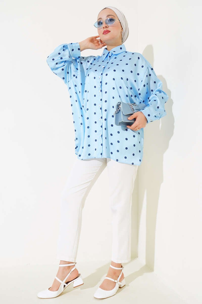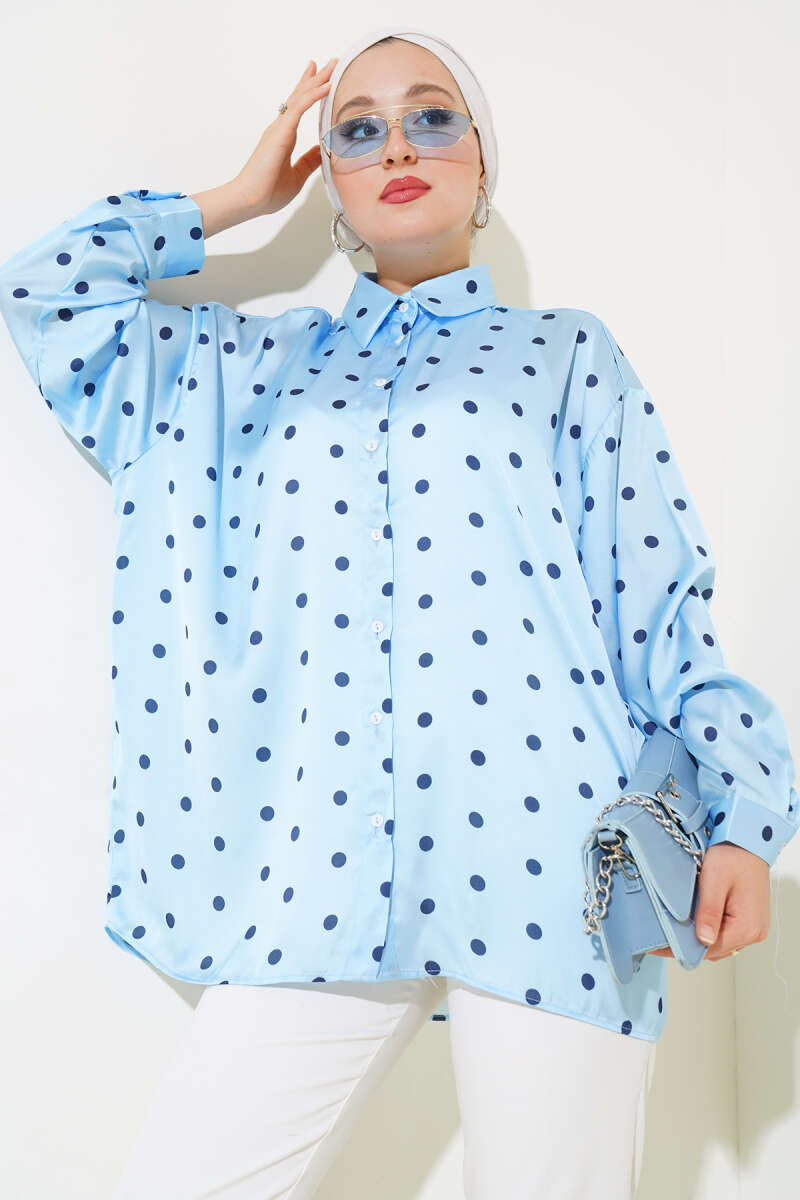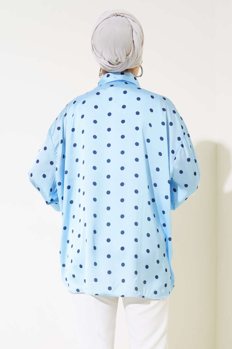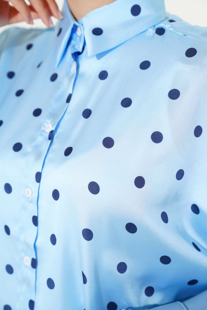 Puantiye Desen Saten Gömlek Mavi