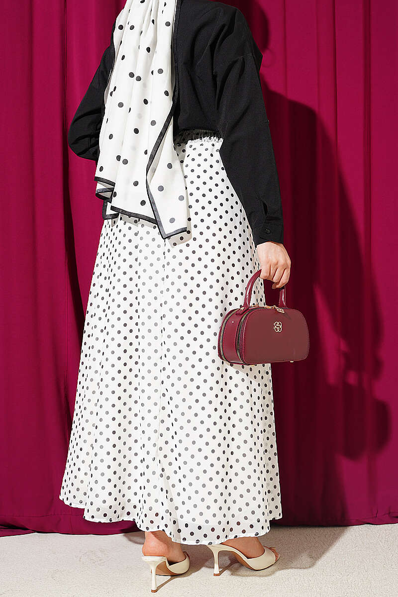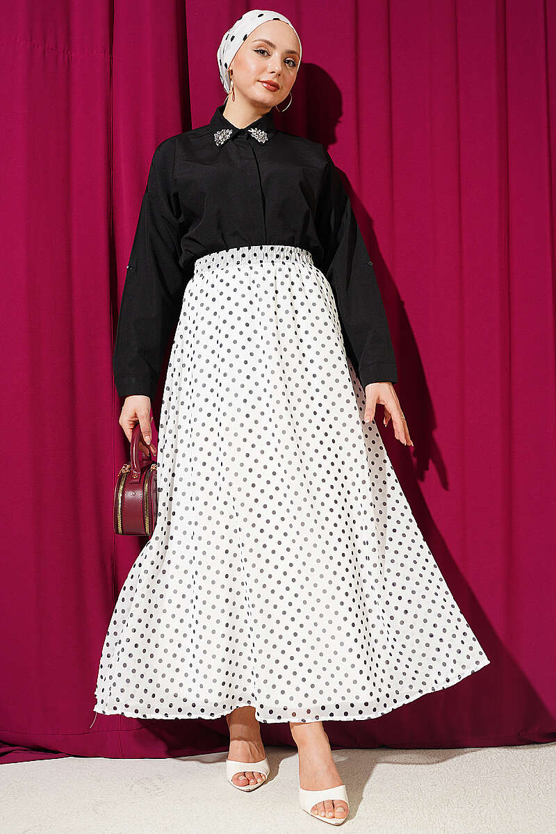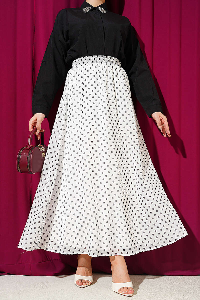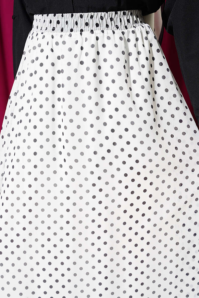 Puantiye Desenli Şifon Etek Beyaz