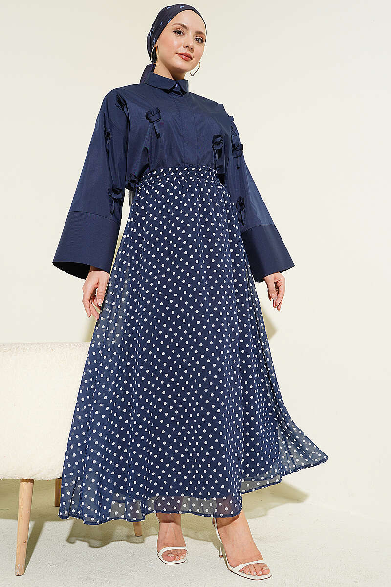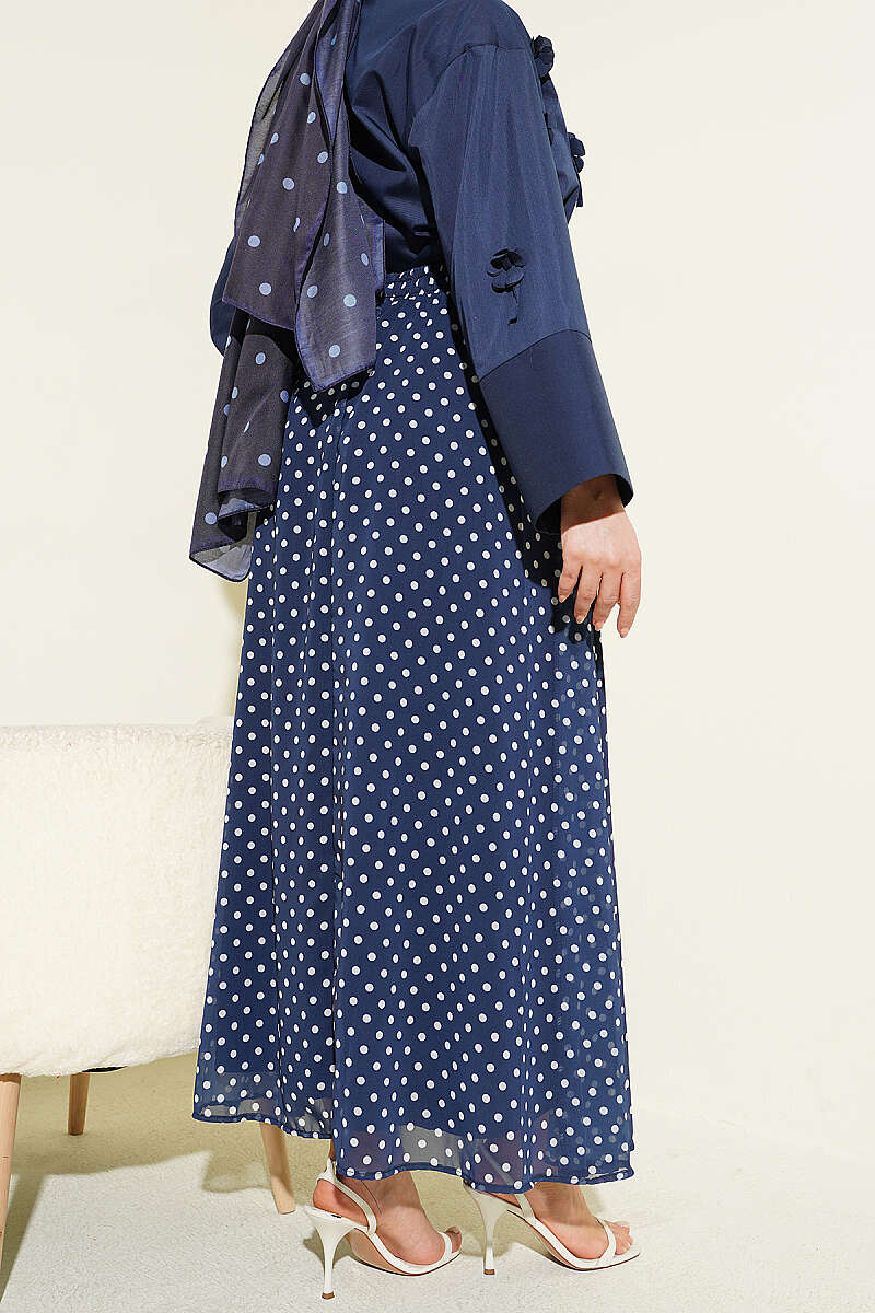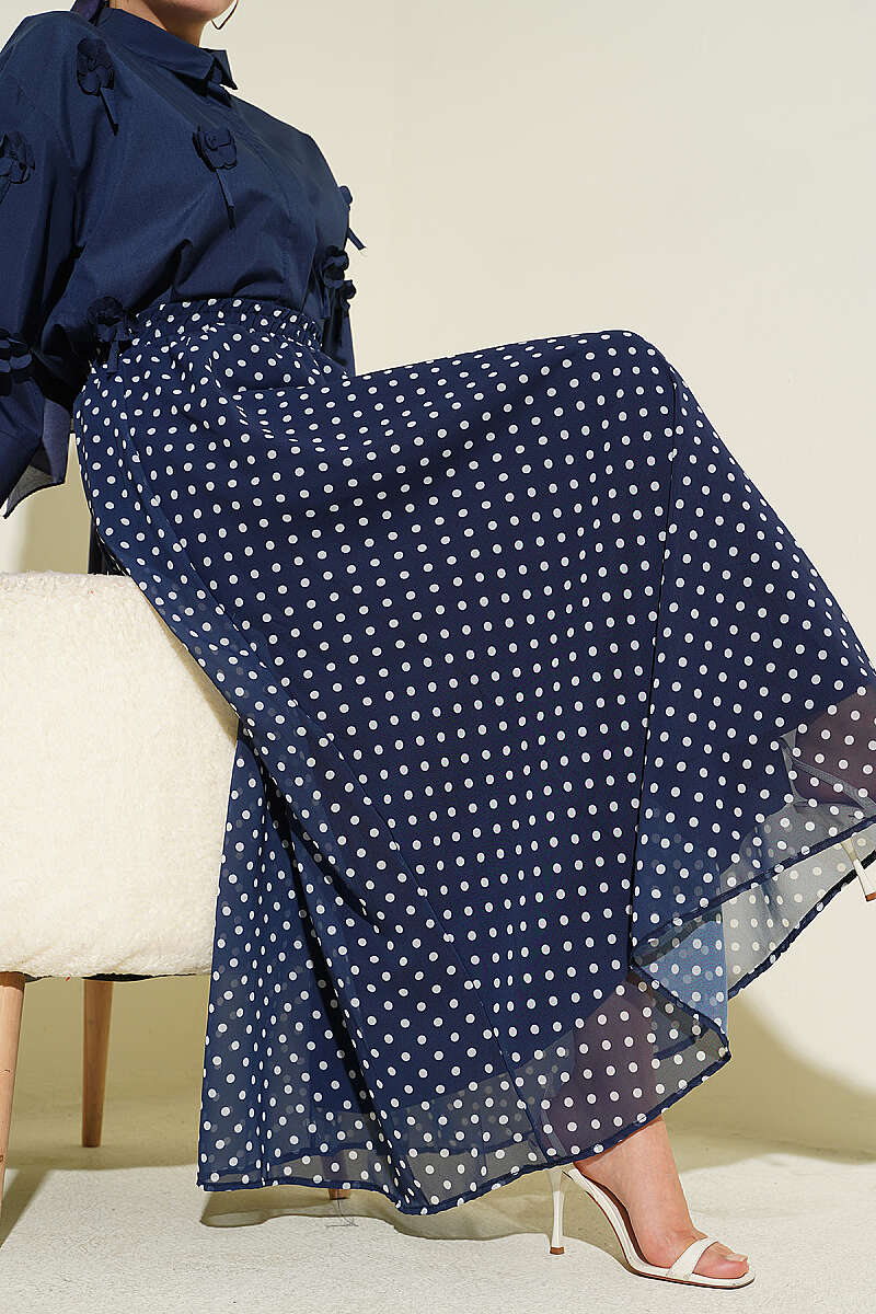 Kemerli Düğmeli Geniş Paça Pantolon Lacivert