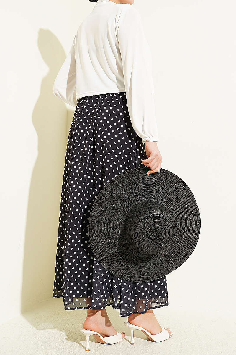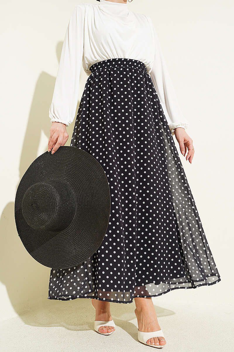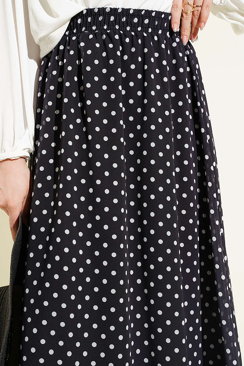 Puantiye Desenli Şifon Etek Siyah