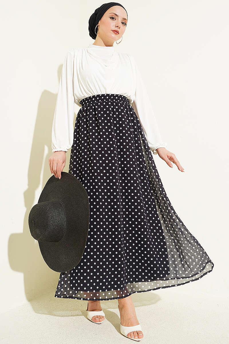 Puantiye Desenli Şifon Etek Lacivert