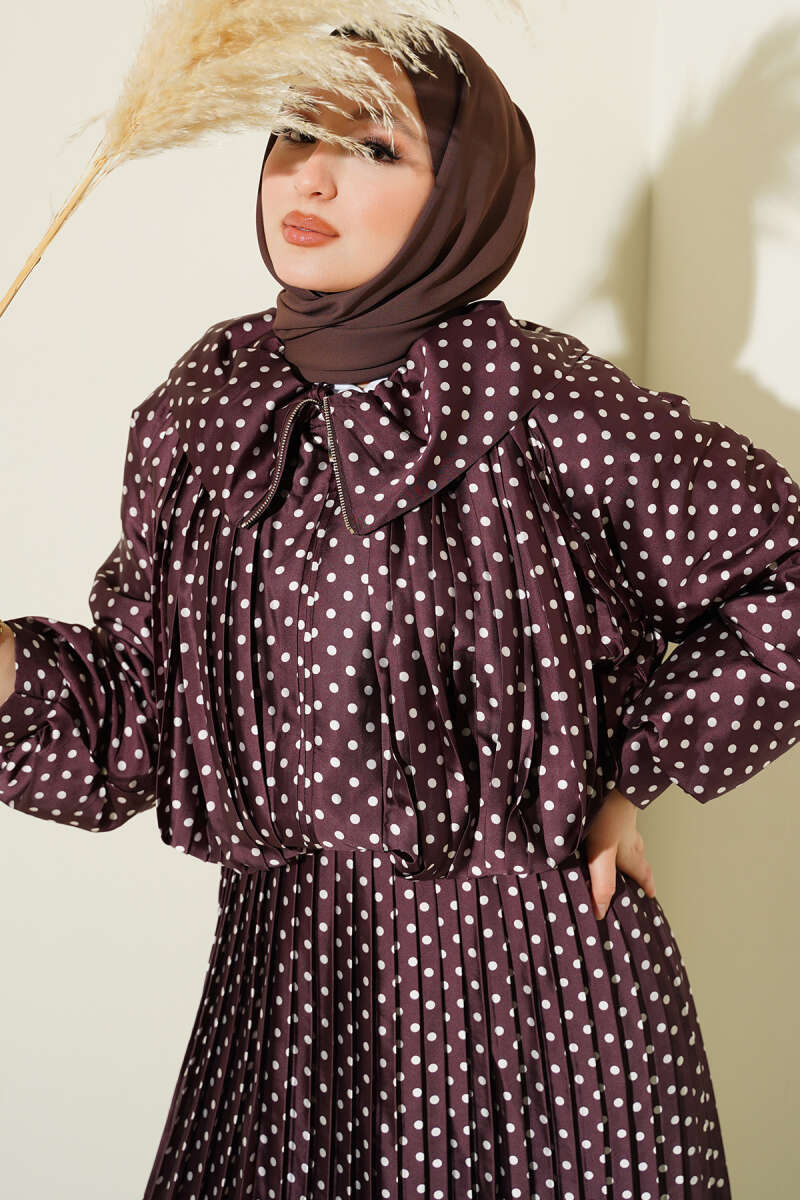 Puantiyeli Etekli İkili Takım Kahve