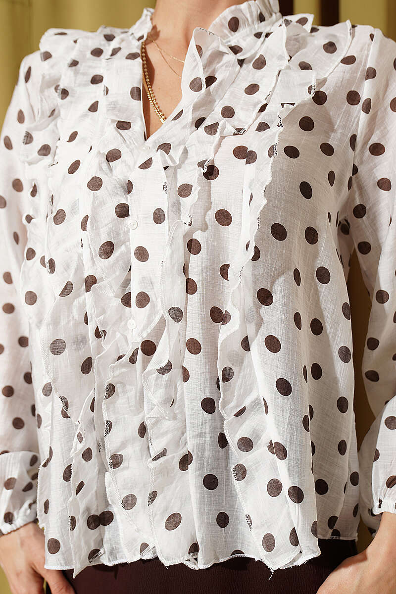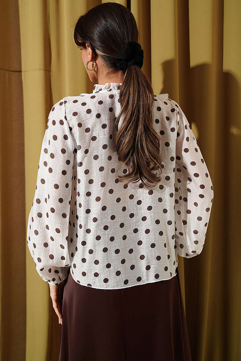 Puantiyeli Fırfırlı Bluz Kahve