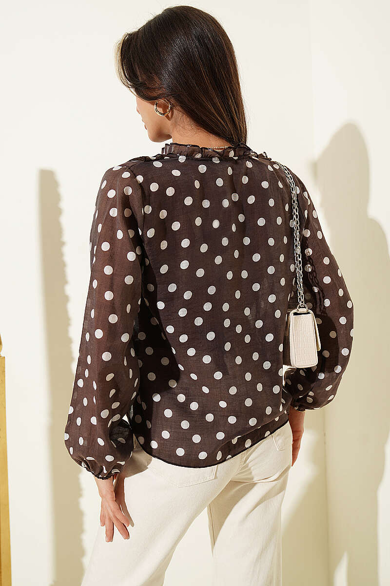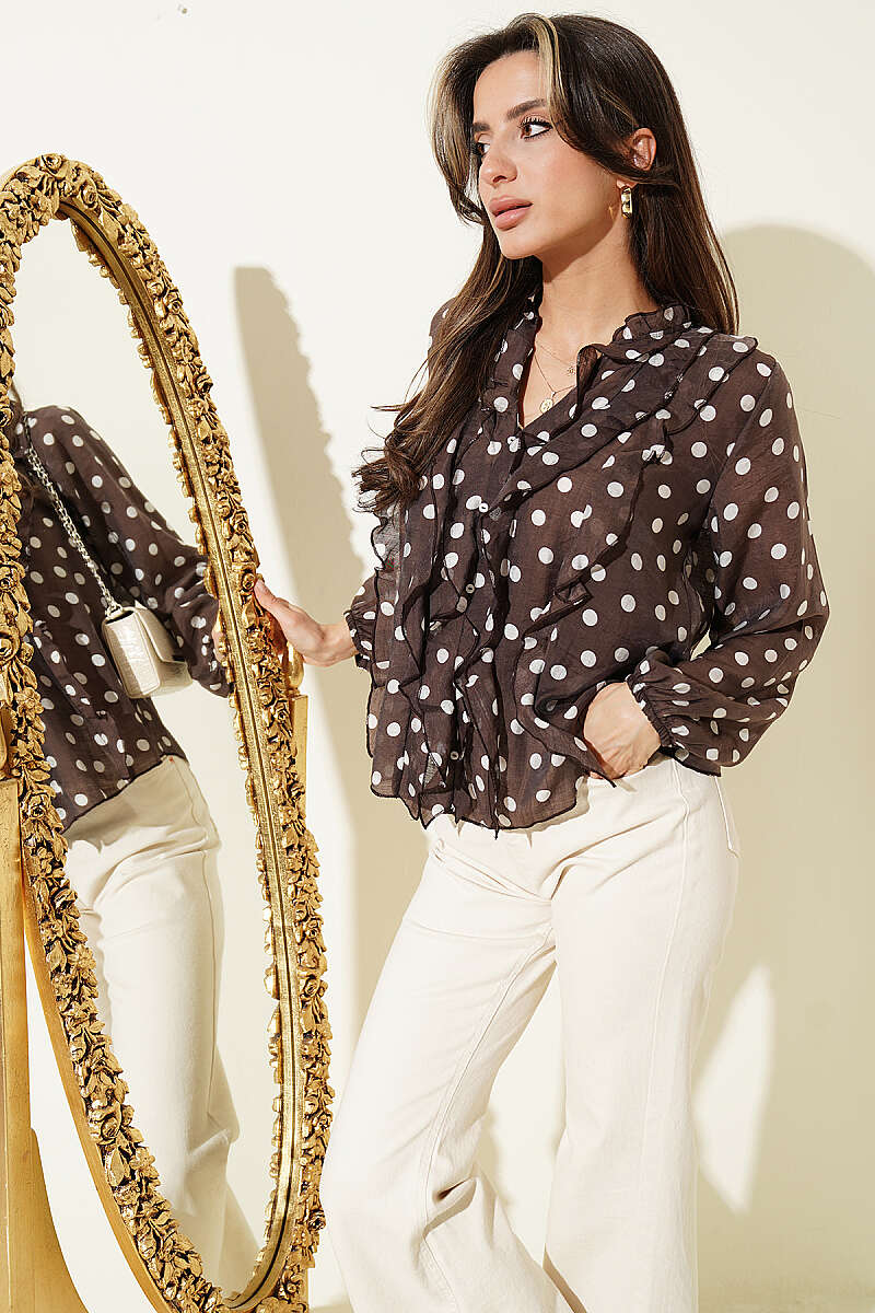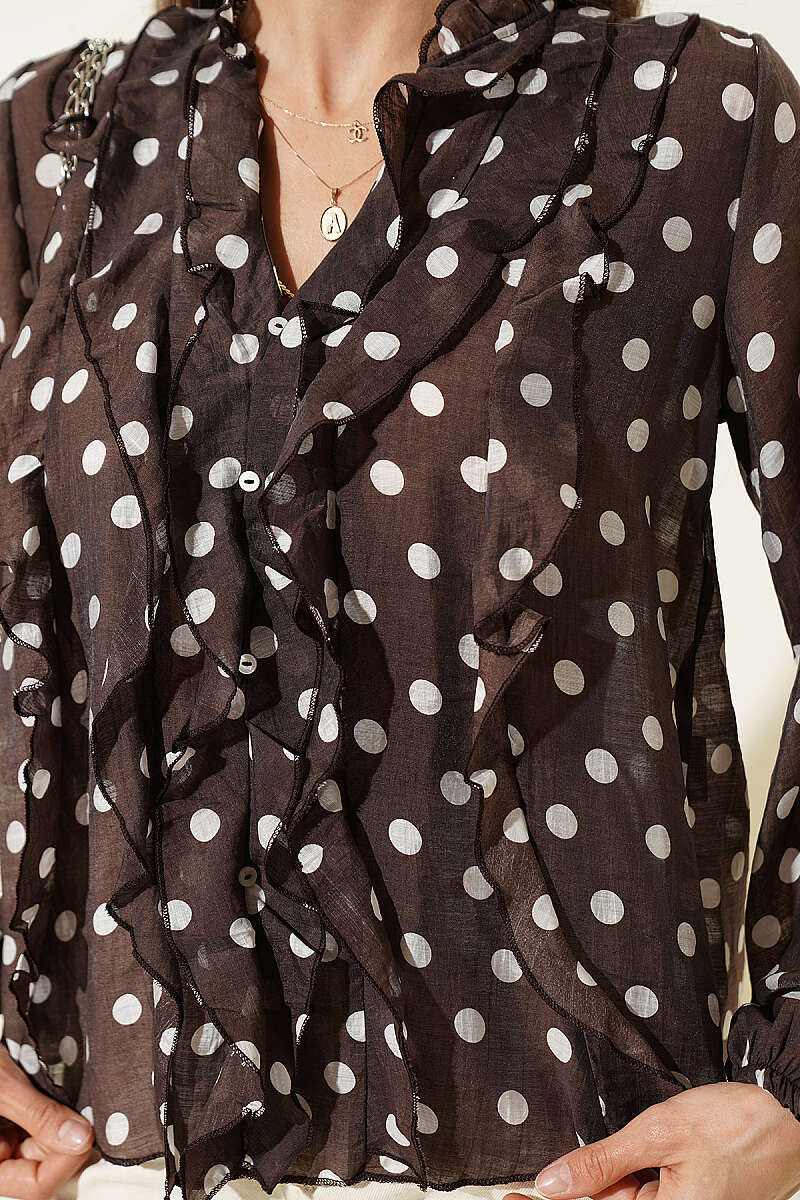 Önü Fırfırlı Uzun Kol Bluz Bej