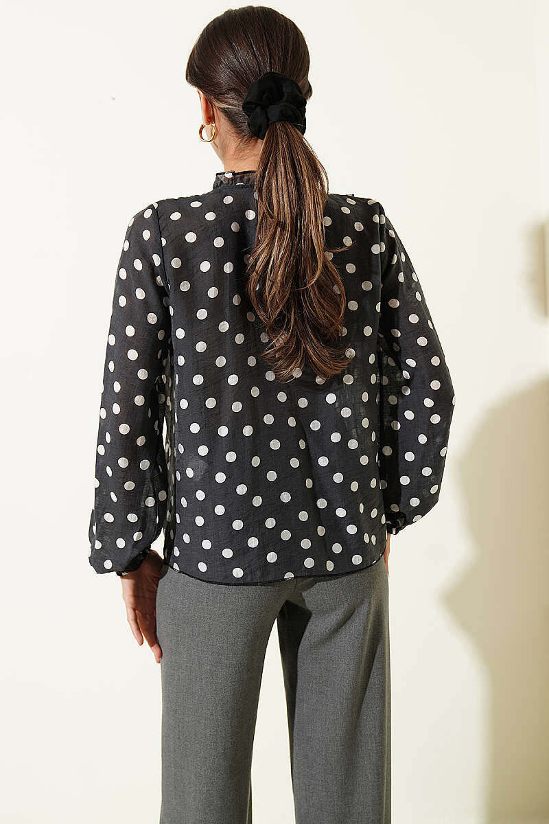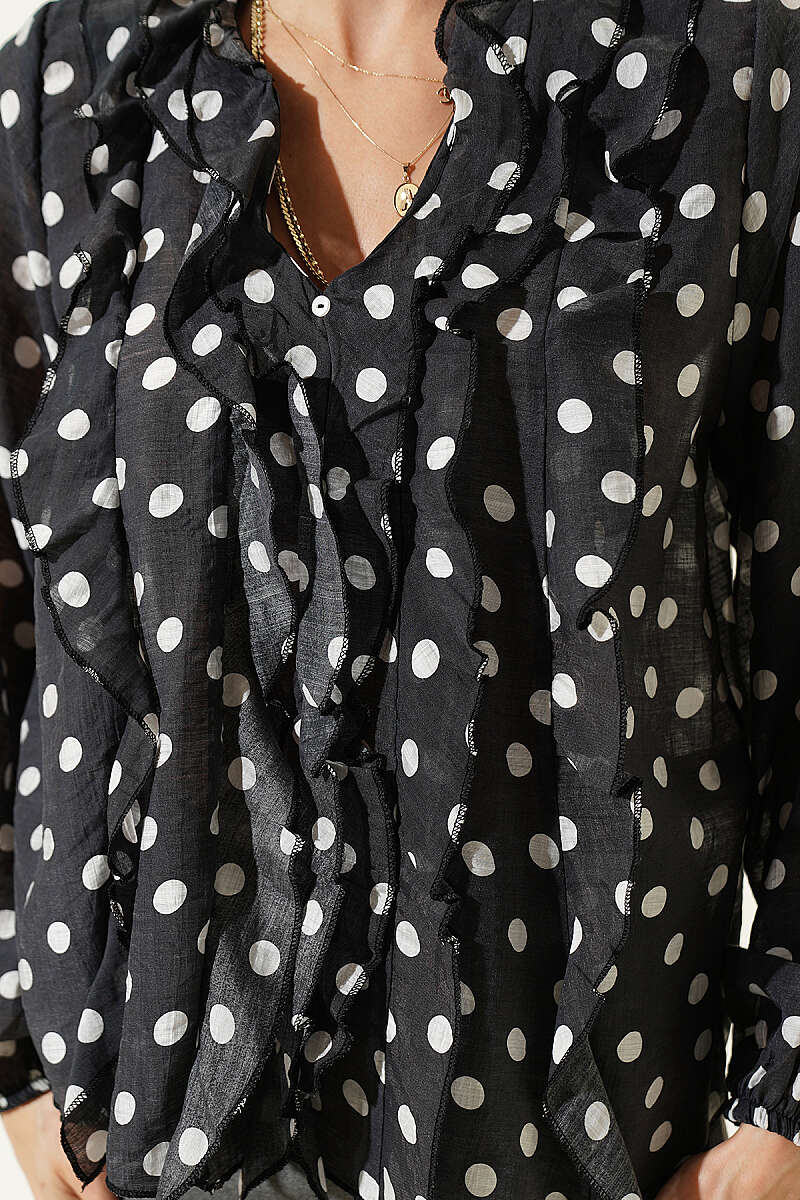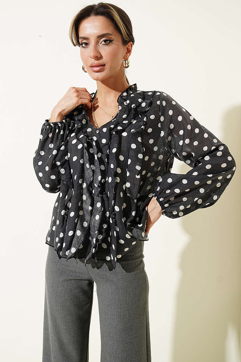 Önü Fırfırlı Uzun Kol Bluz Bej