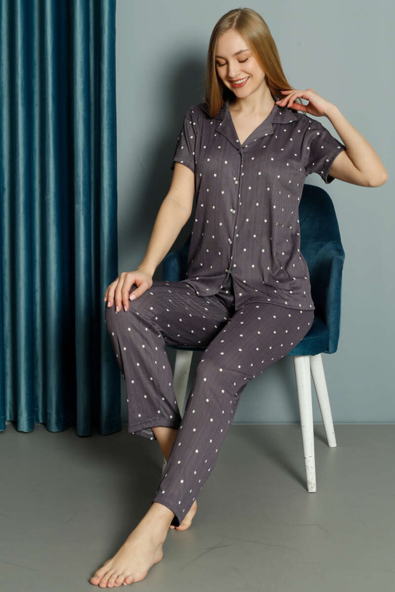 Puantiyeli Kısa Kol Kadın Pijama Takımı Leylak