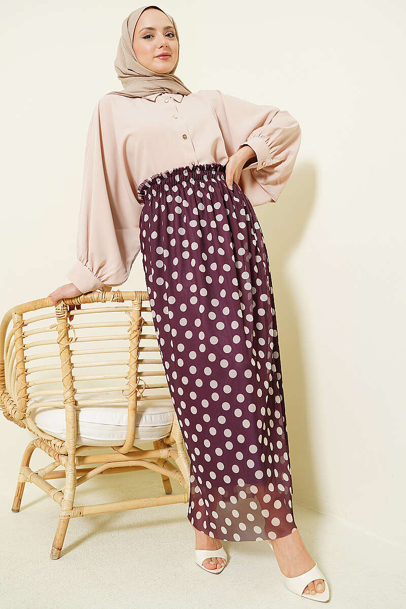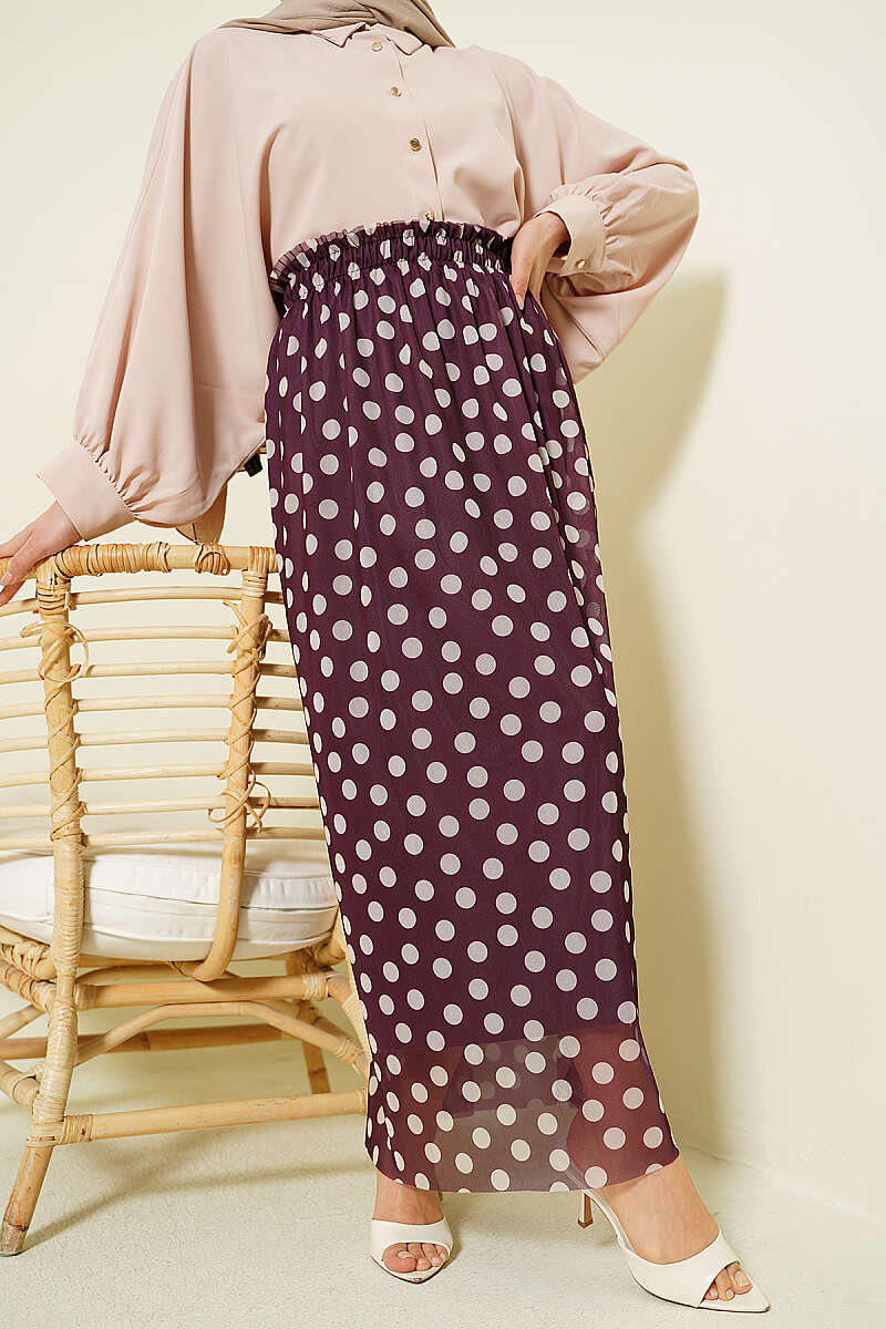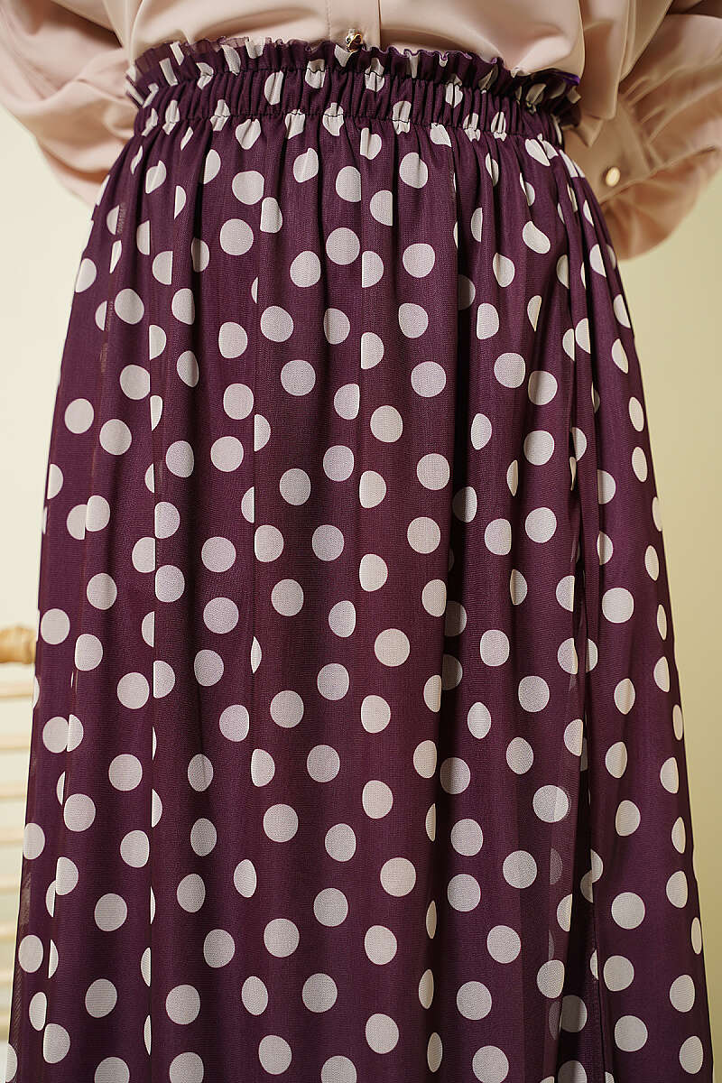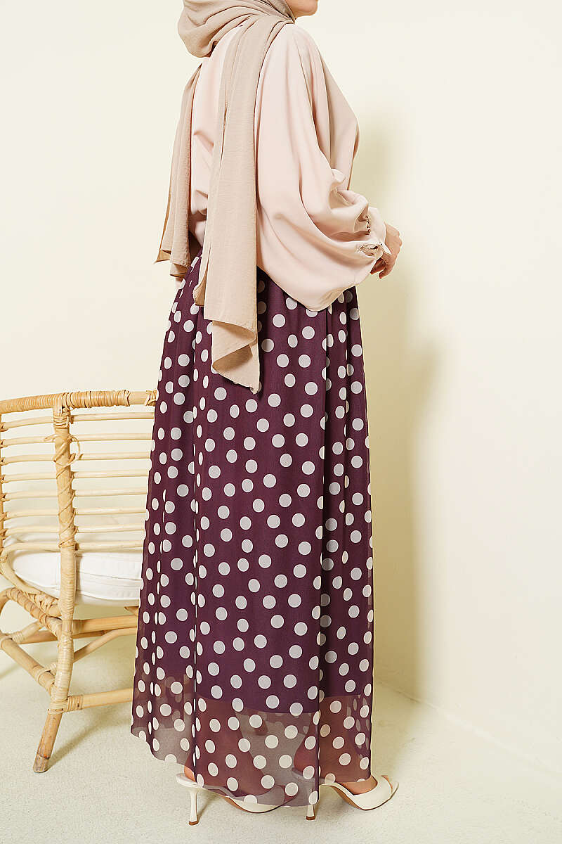 Puantiyeli Şifon Etek Mürdüm