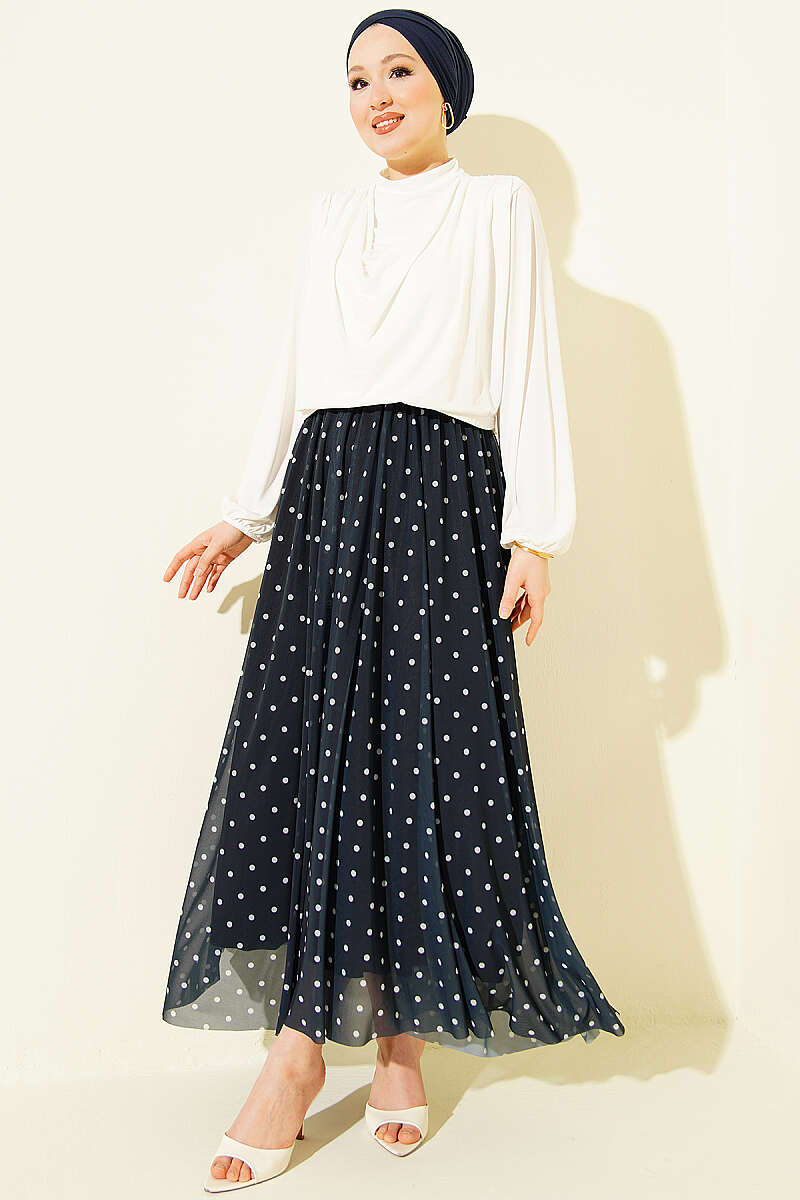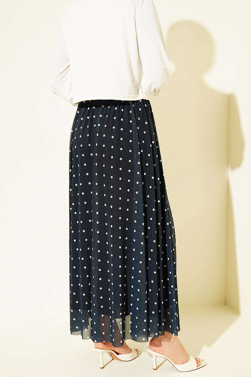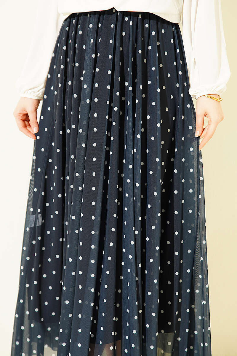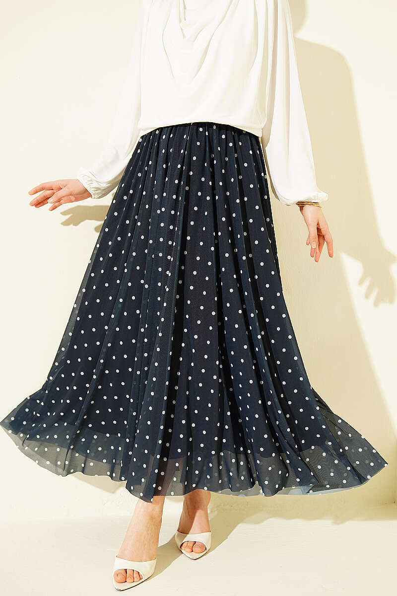 Puantiyeli Tül Kloş Etek Lacivert