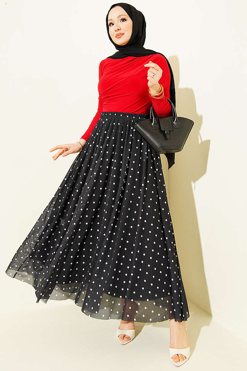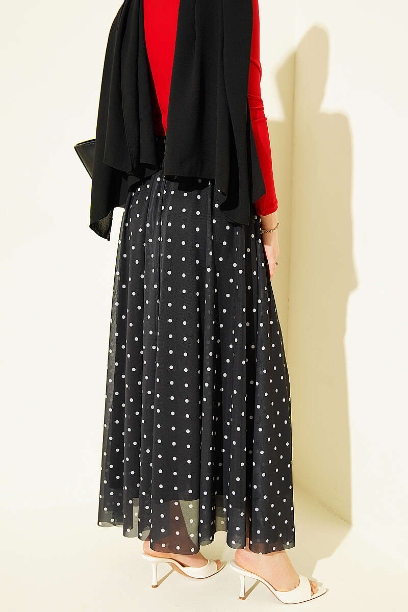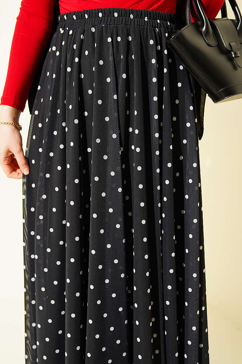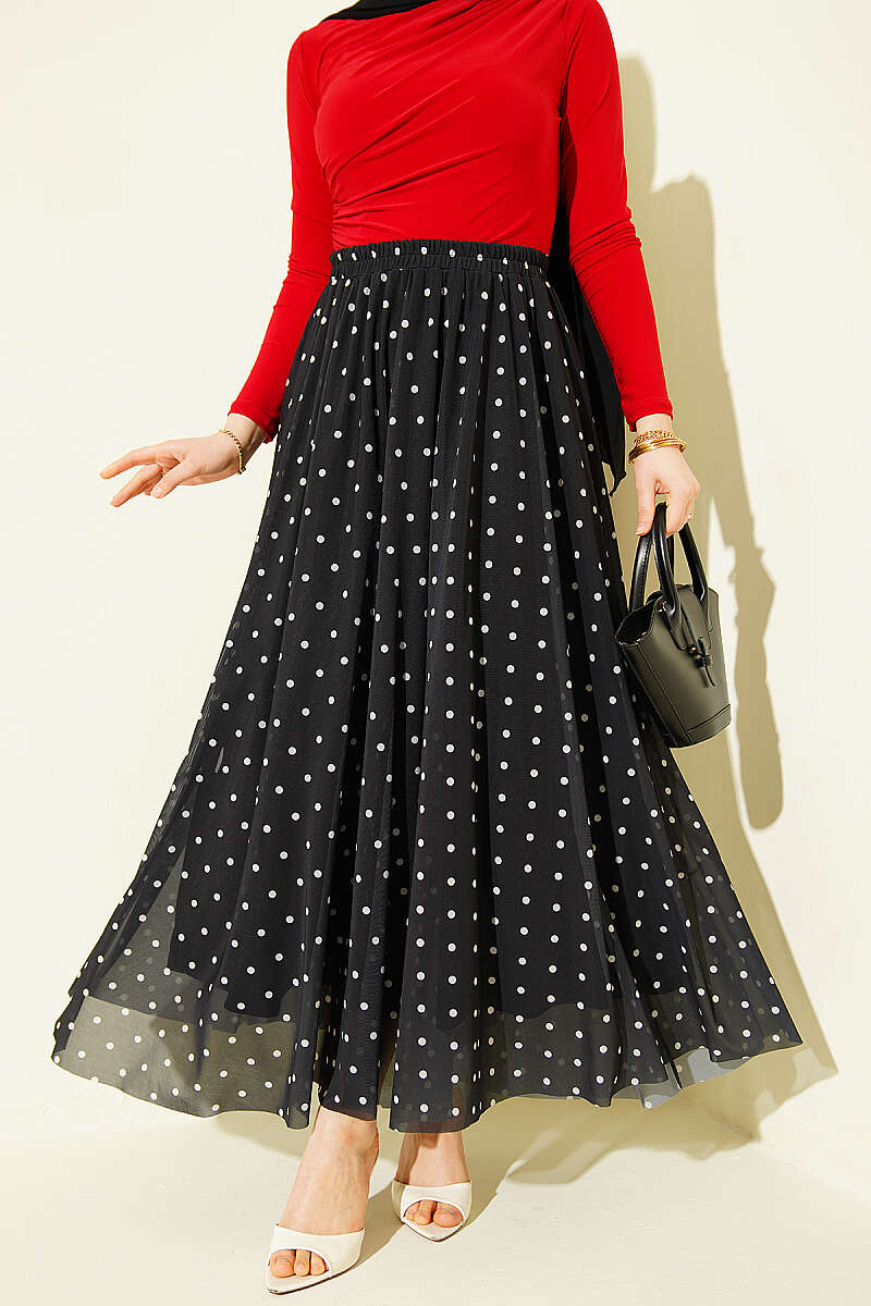 Puantiyeli Tül Kloş Etek Siyah