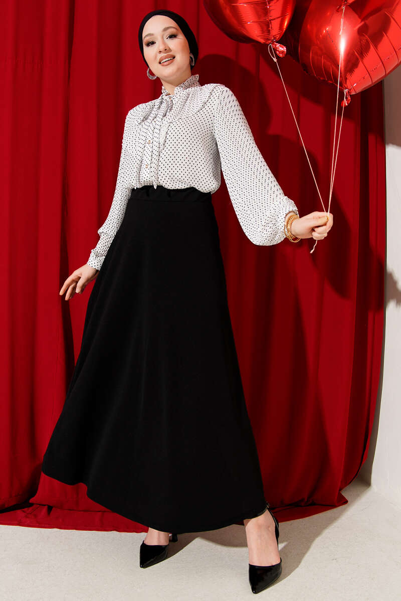 Puantiyeli Yaka Fırfırlı Kısa Gömlek Beyaz