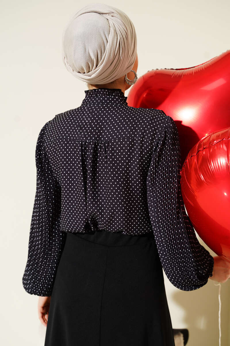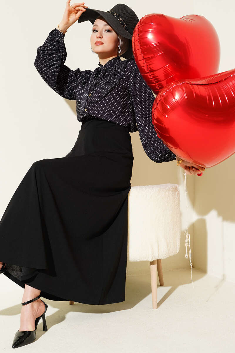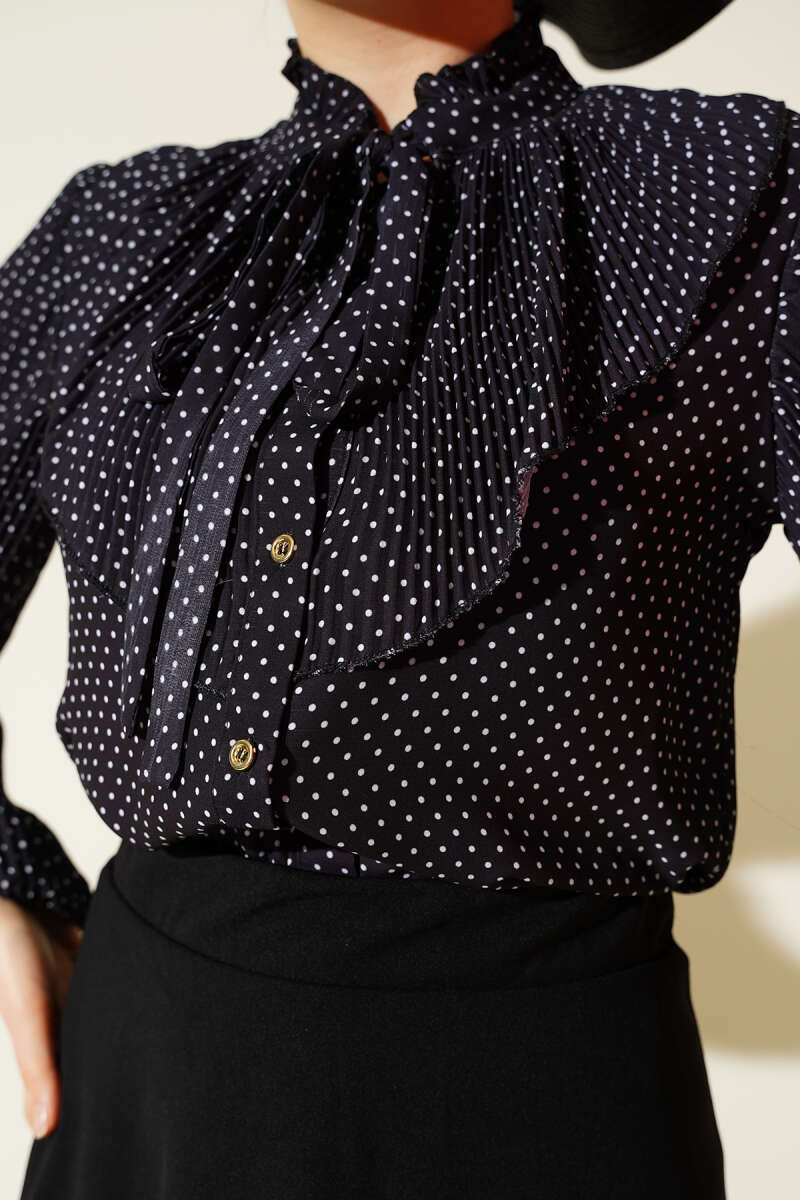 Puantiyeli Yaka Fırfırlı Kısa Gömlek Siyah