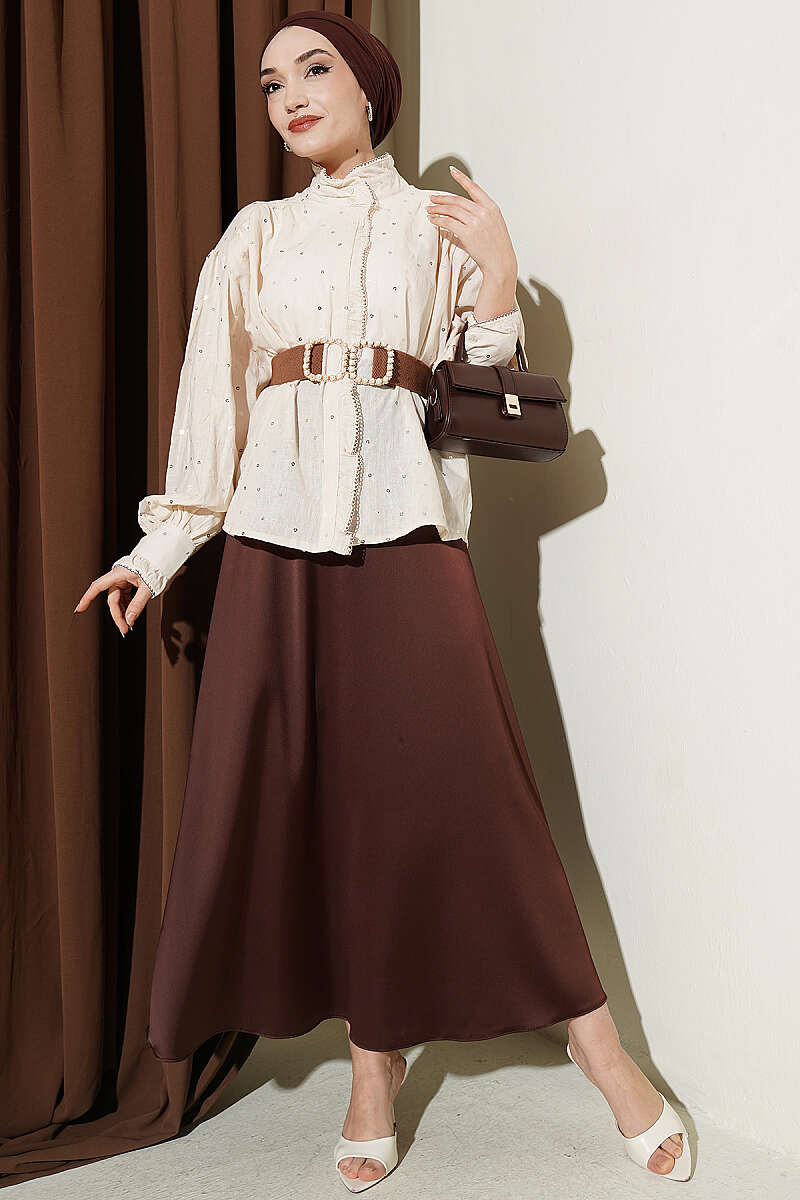 Kat Kat Detaylı Büzgülü Gömlek Kahve