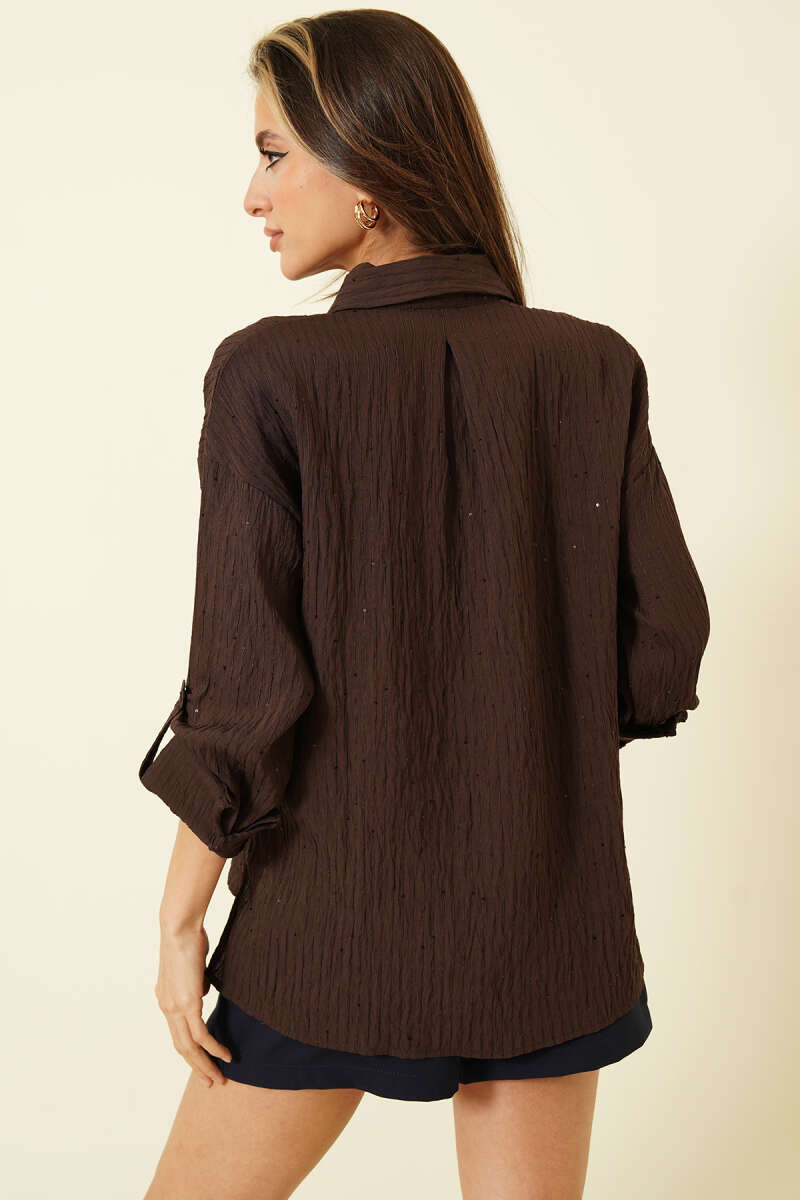 Pul Detaylı Çizgi Kabartma Gömlek Kahve