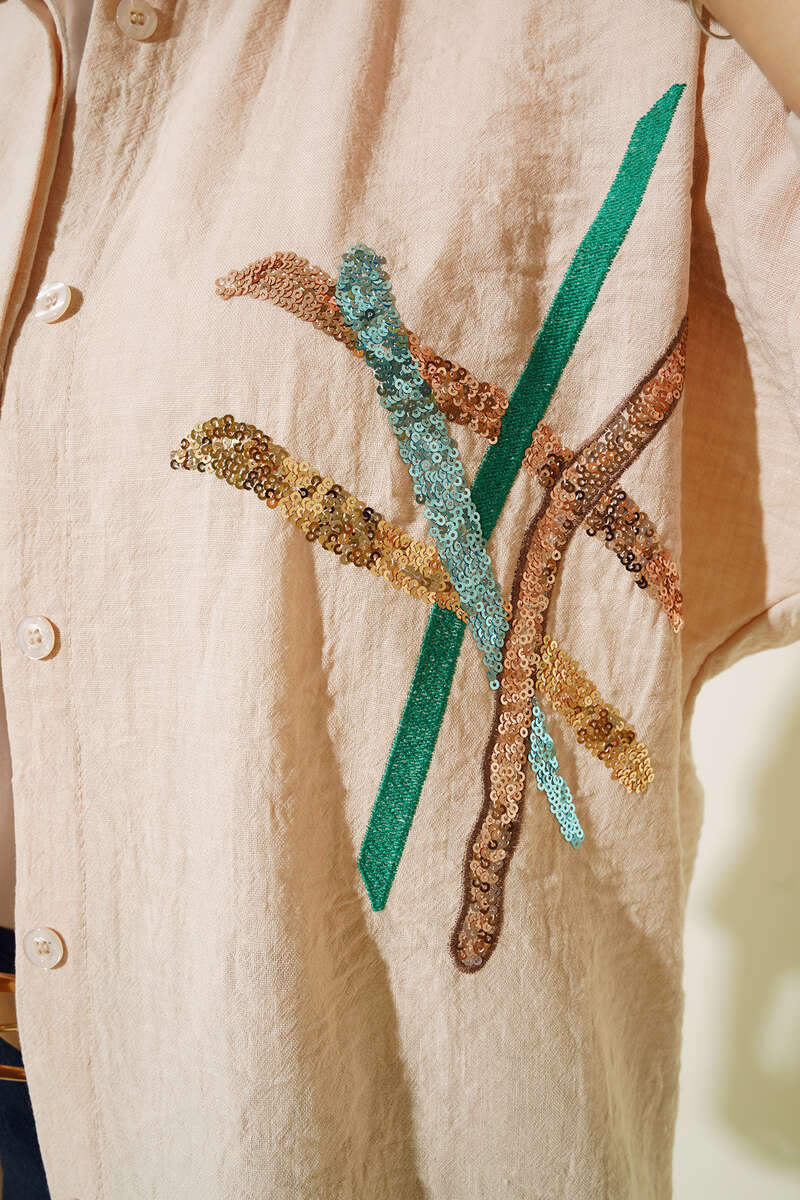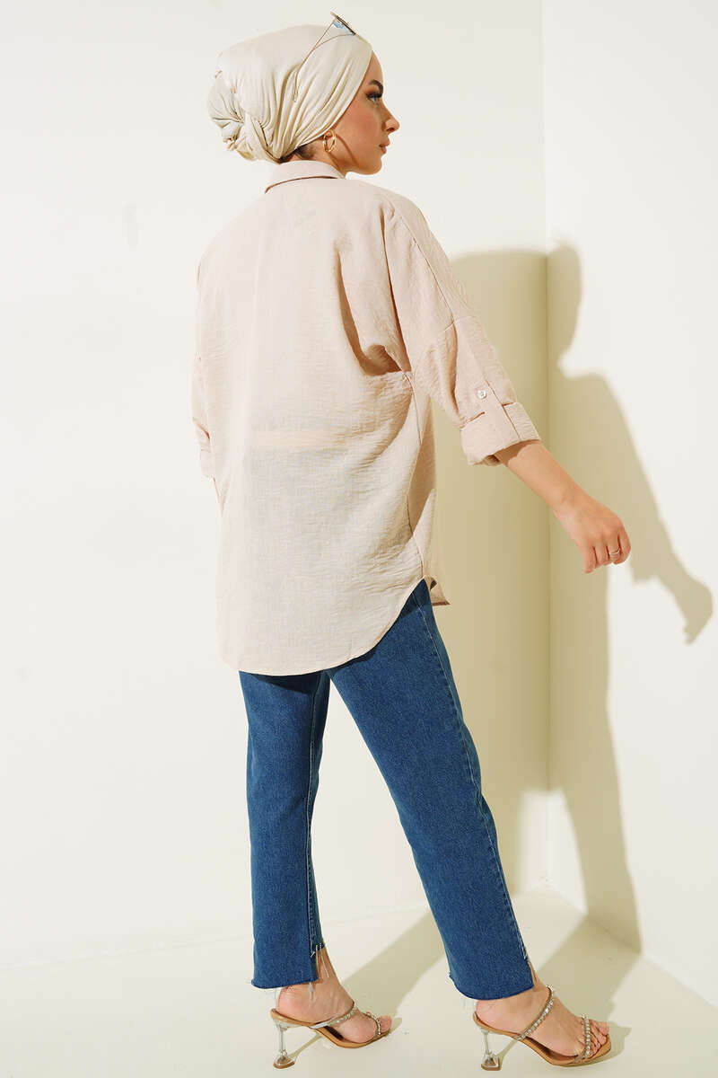 Yeni sezon gömleğimiz ön kısmında bulunan parlak pul nakışlarıyla dikkat çekmektedir. Kolları uzun olan gömleğimizin ön kısmı arka kısmına göre kısadır. Tarzıyla fark yaratan gömleğim renk seçeneklerine sahiptir.