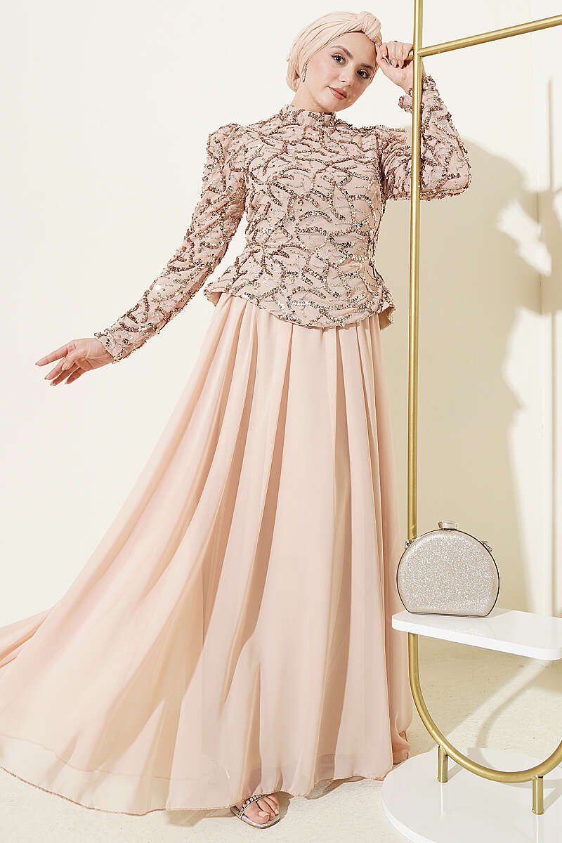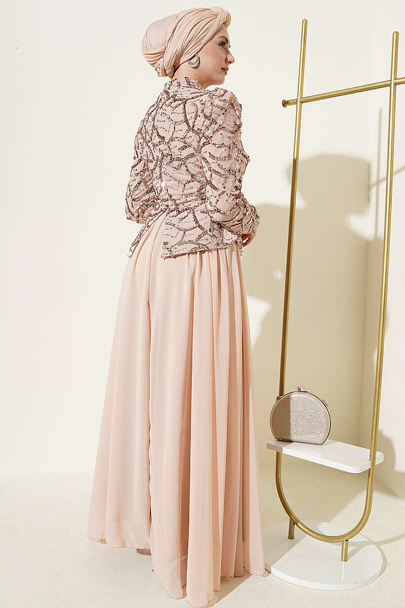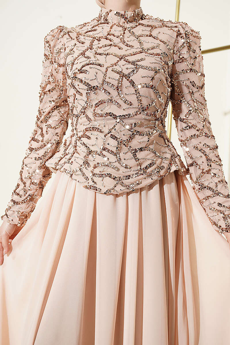 Pul Payet Ve Boncuk İşlemeli Abiye Bej