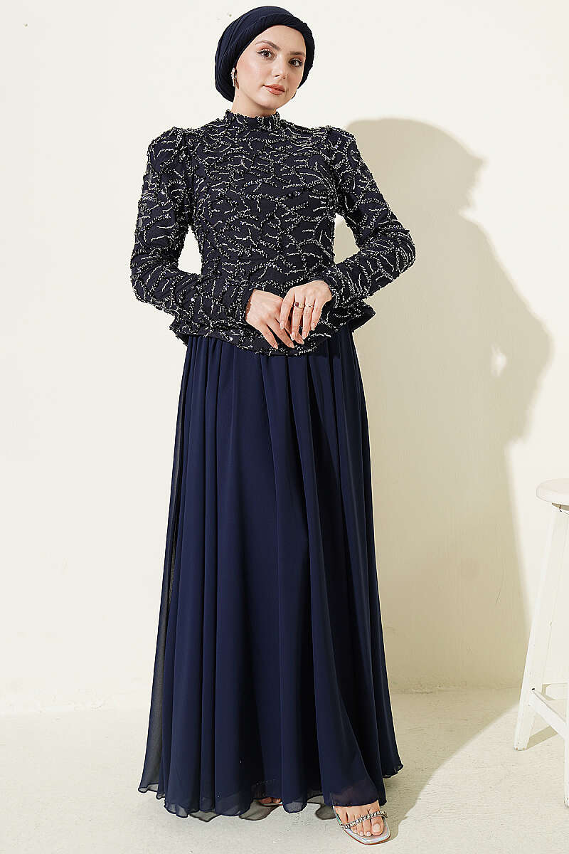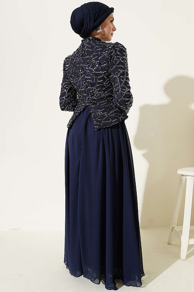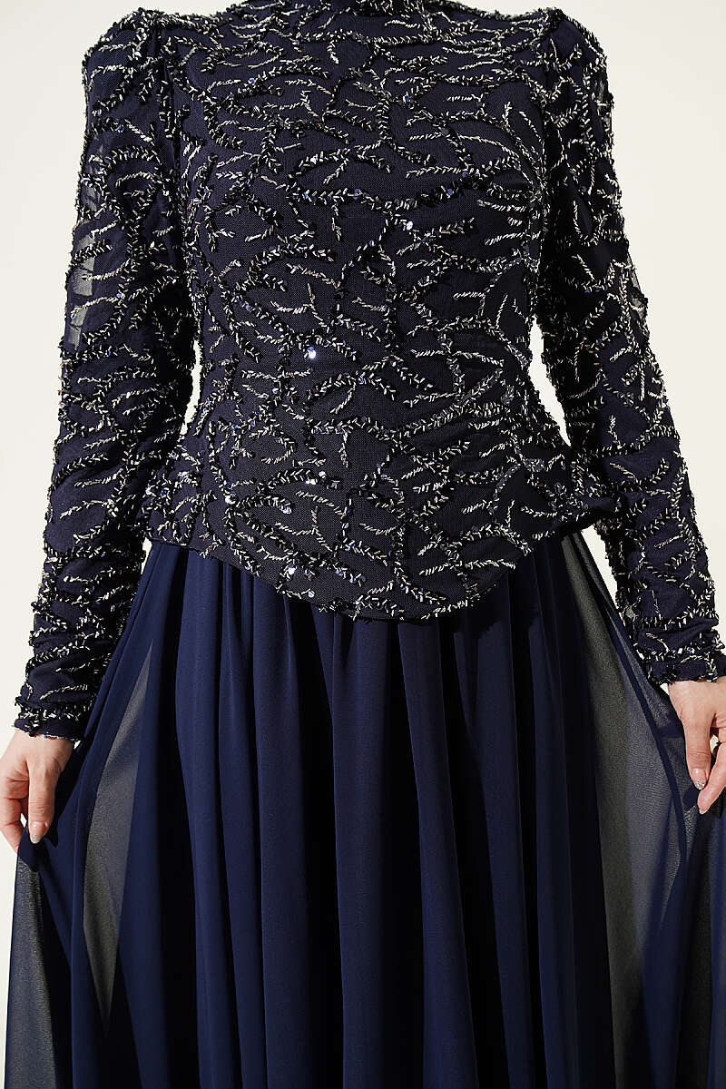 Pul Payet Ve Boncuk İşlemeli Abiye Lacivert