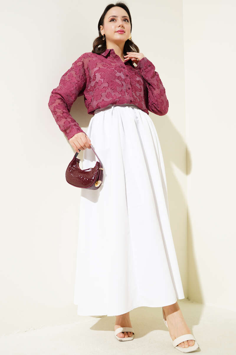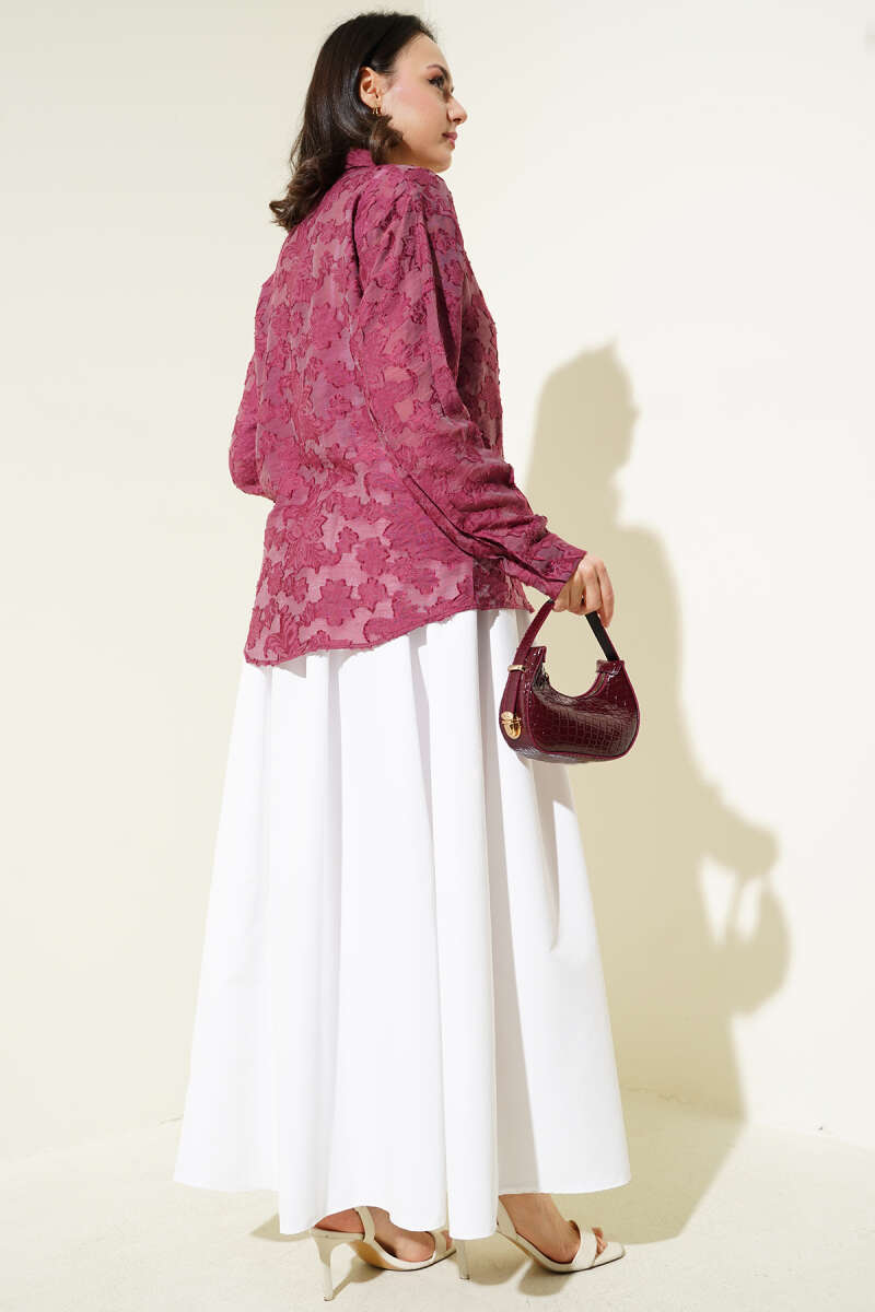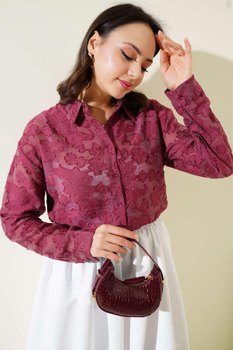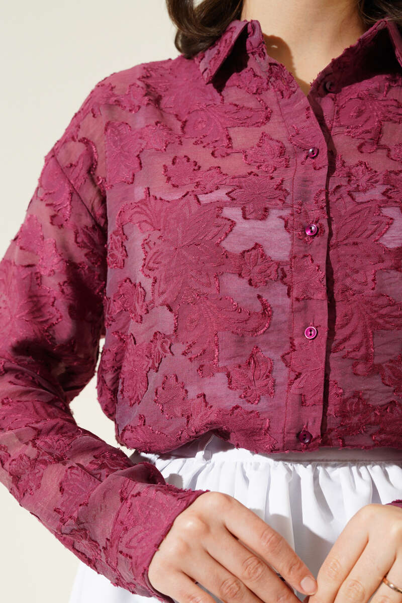 Püskül Çiçek Desen Transparan Gömlek Mürdüm