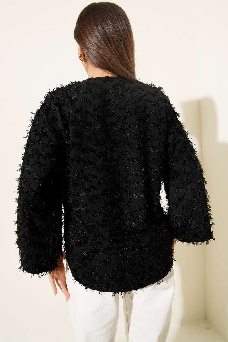 Püskül Detaylı Bağcıklı Kimono Siyah