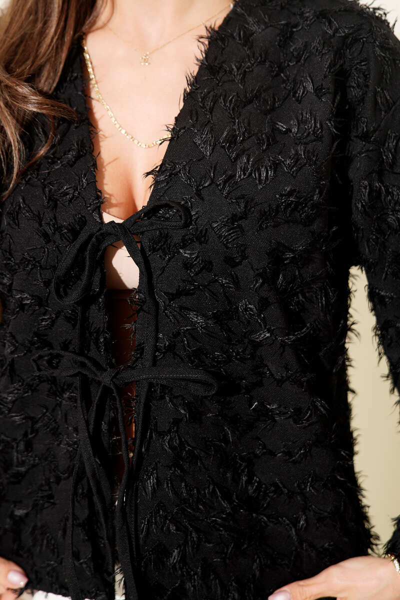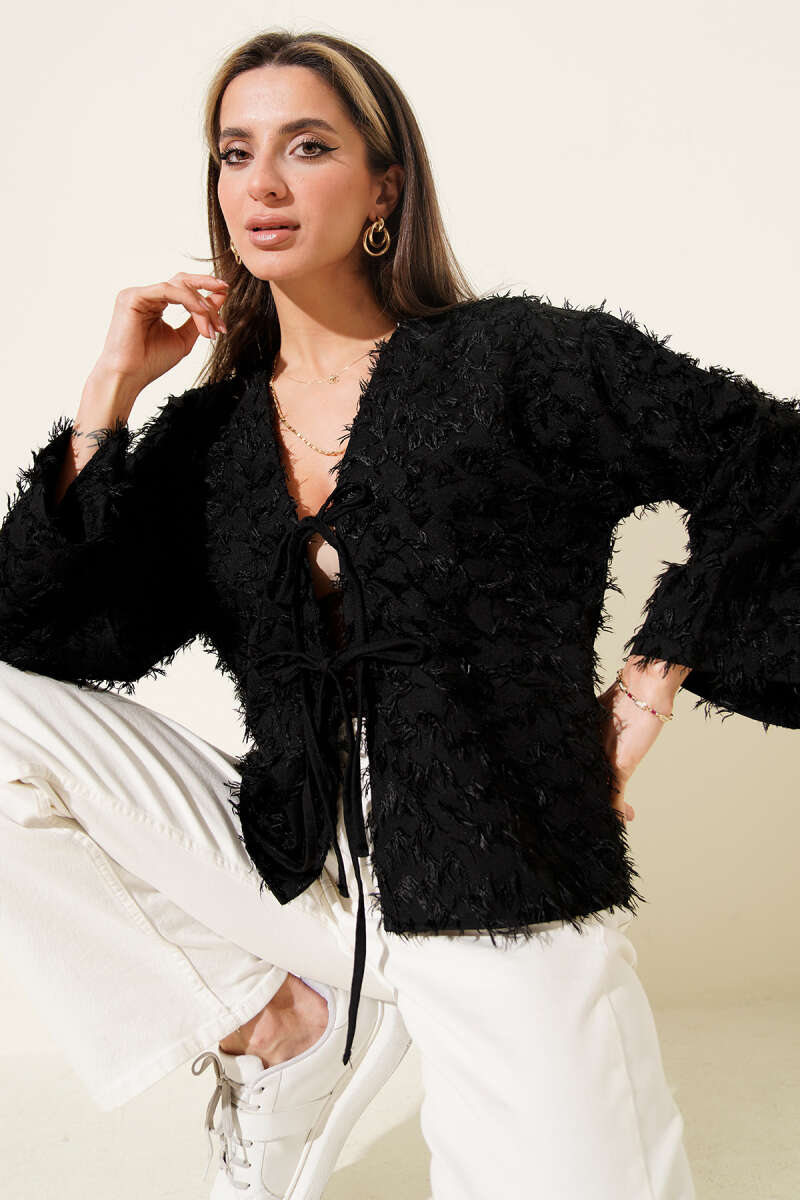 Püskül Detaylı Bağcıklı Kimono Siyah