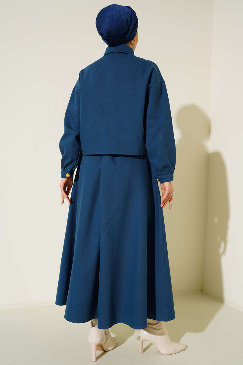 Zımbalı Ceketli Tencel İkili Takım Lacivert