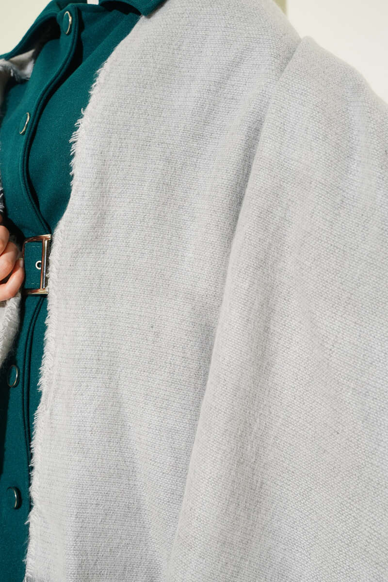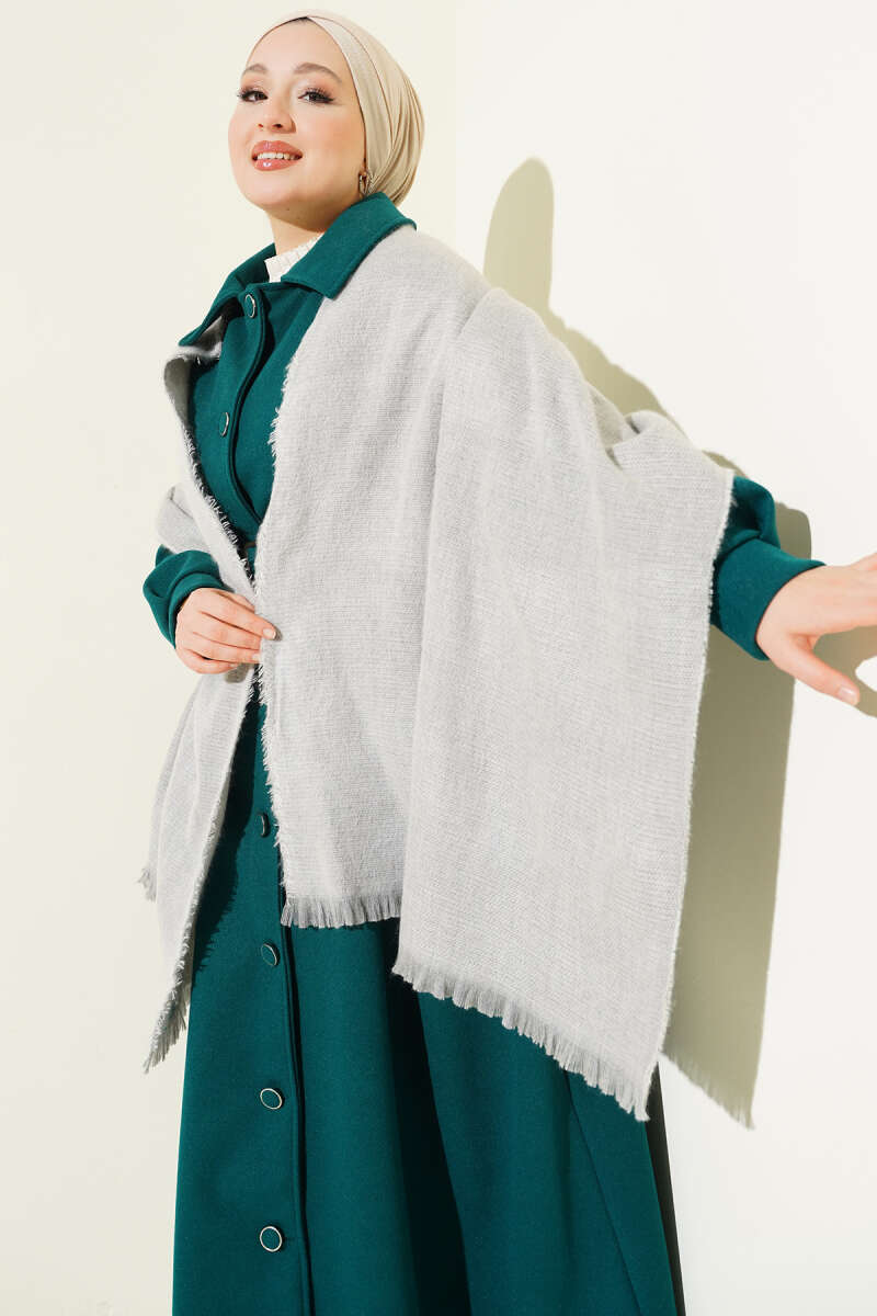 Çizgi Detaylı Omuz Şalı Zümrüt