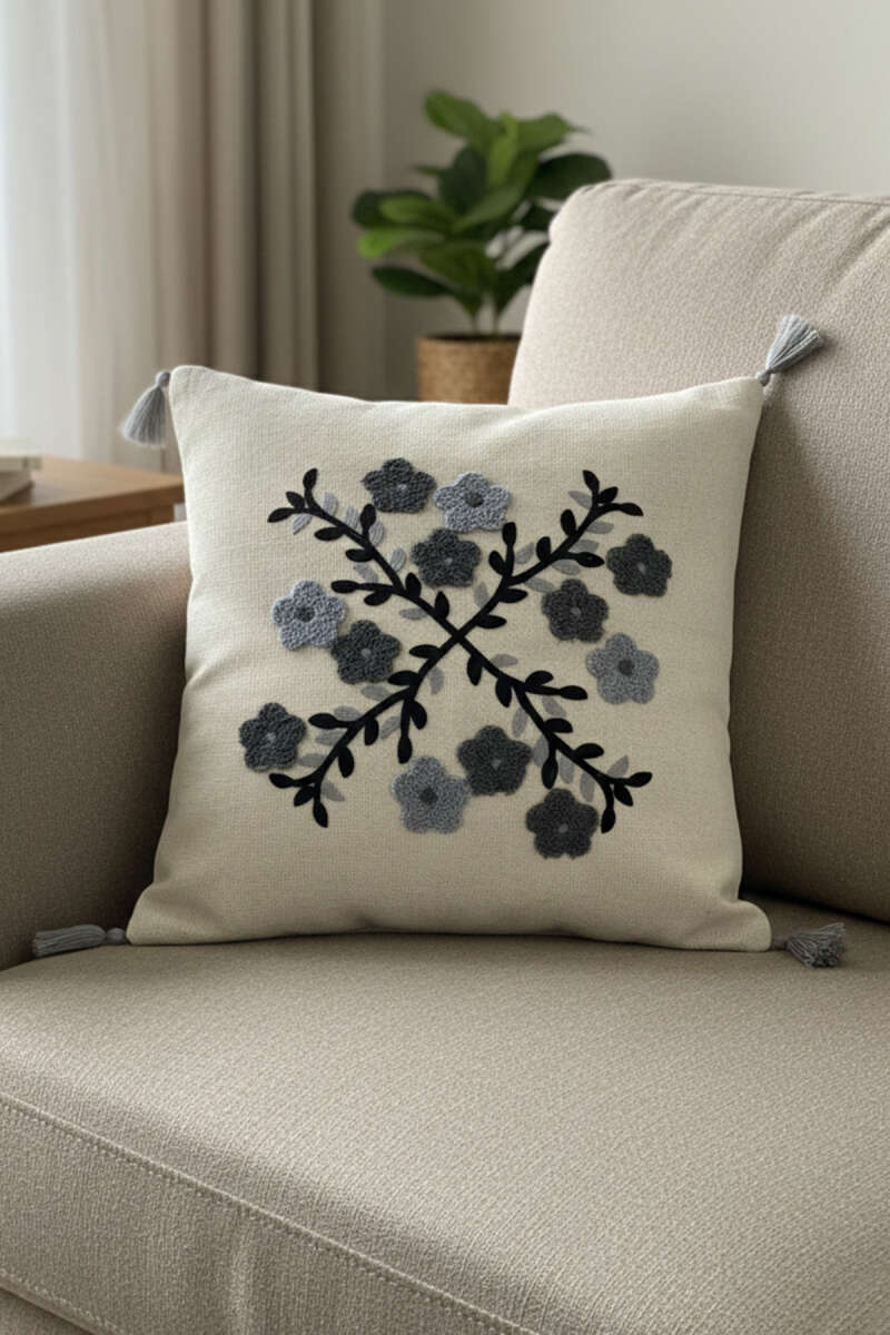 Püsküllü Bohem Tarz Punch İşlemeli Yastık Kılıfı Asorti 1