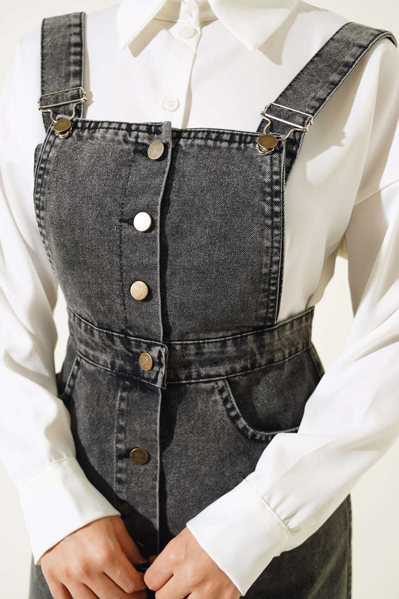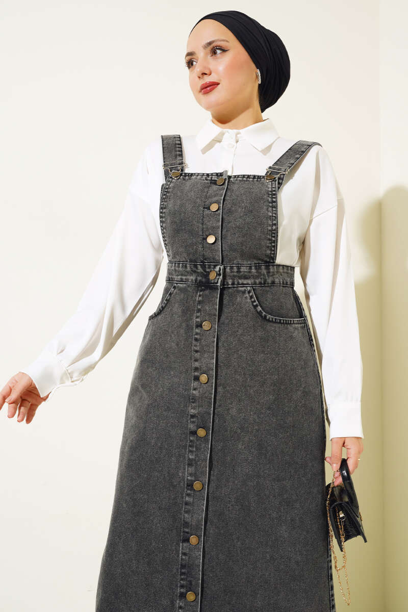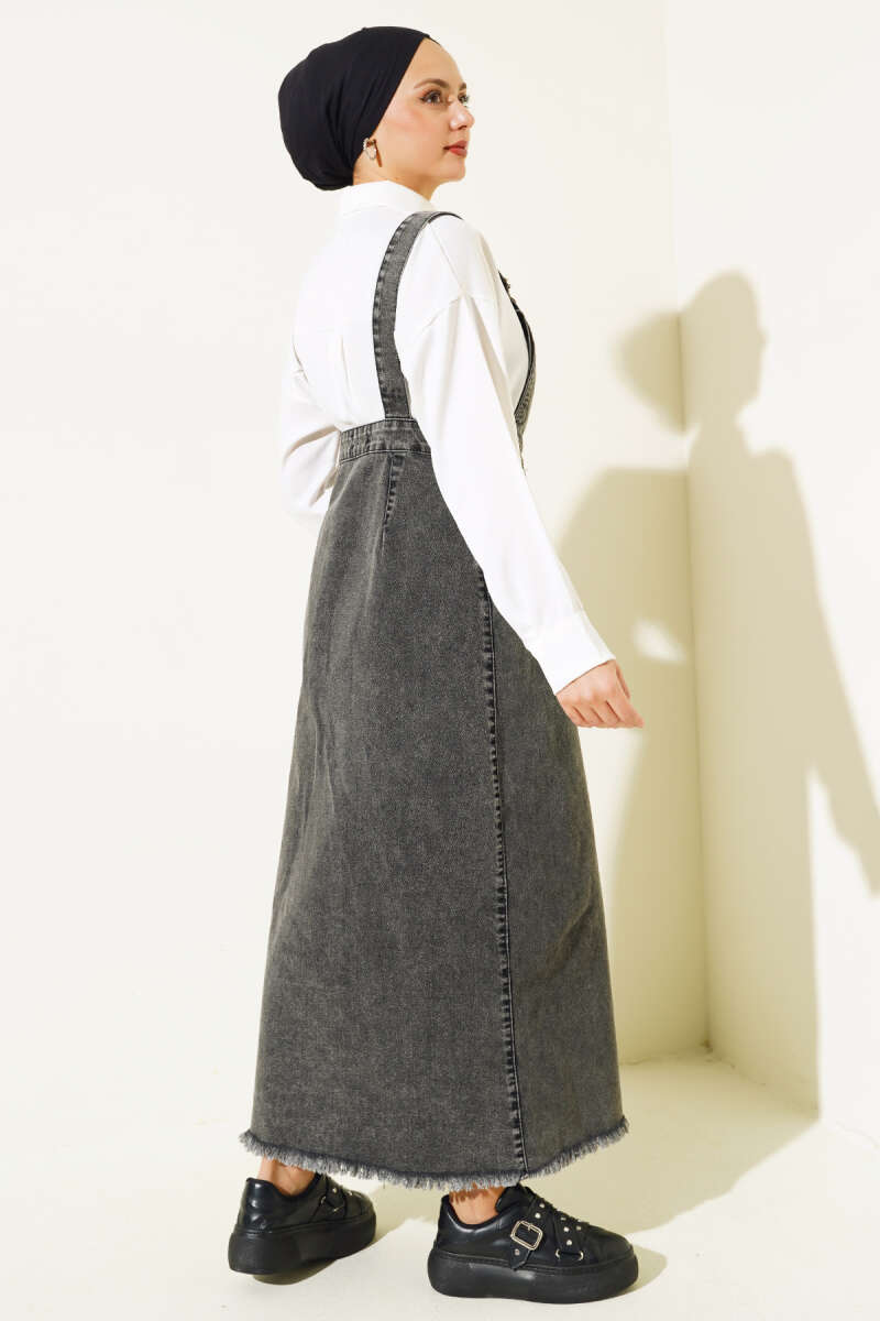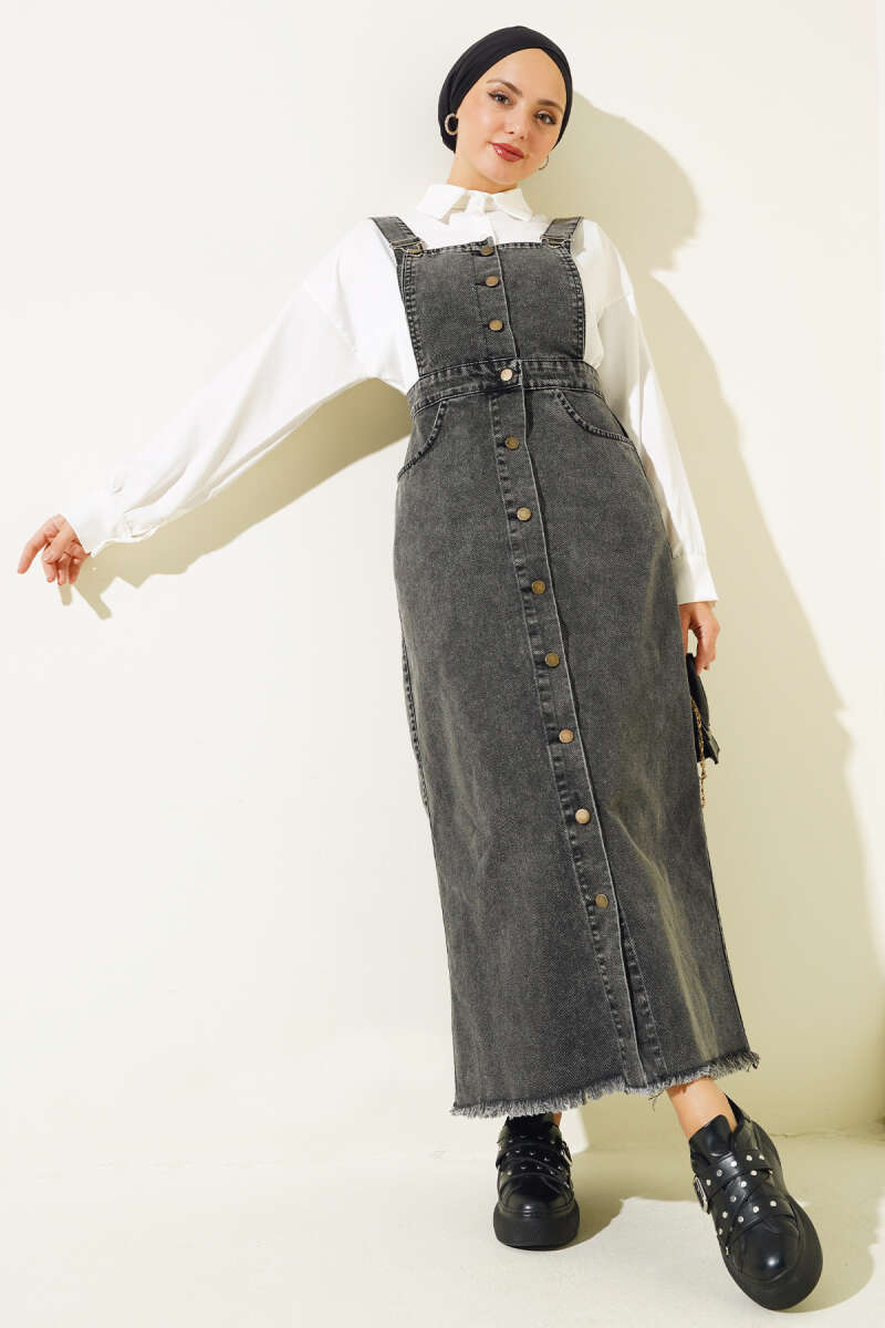 Püsküllü Boydan Düğmeli Kot Slopet Füme