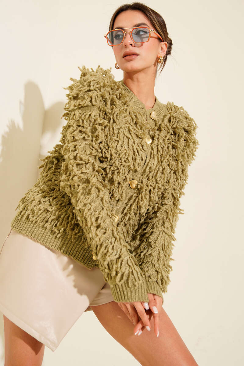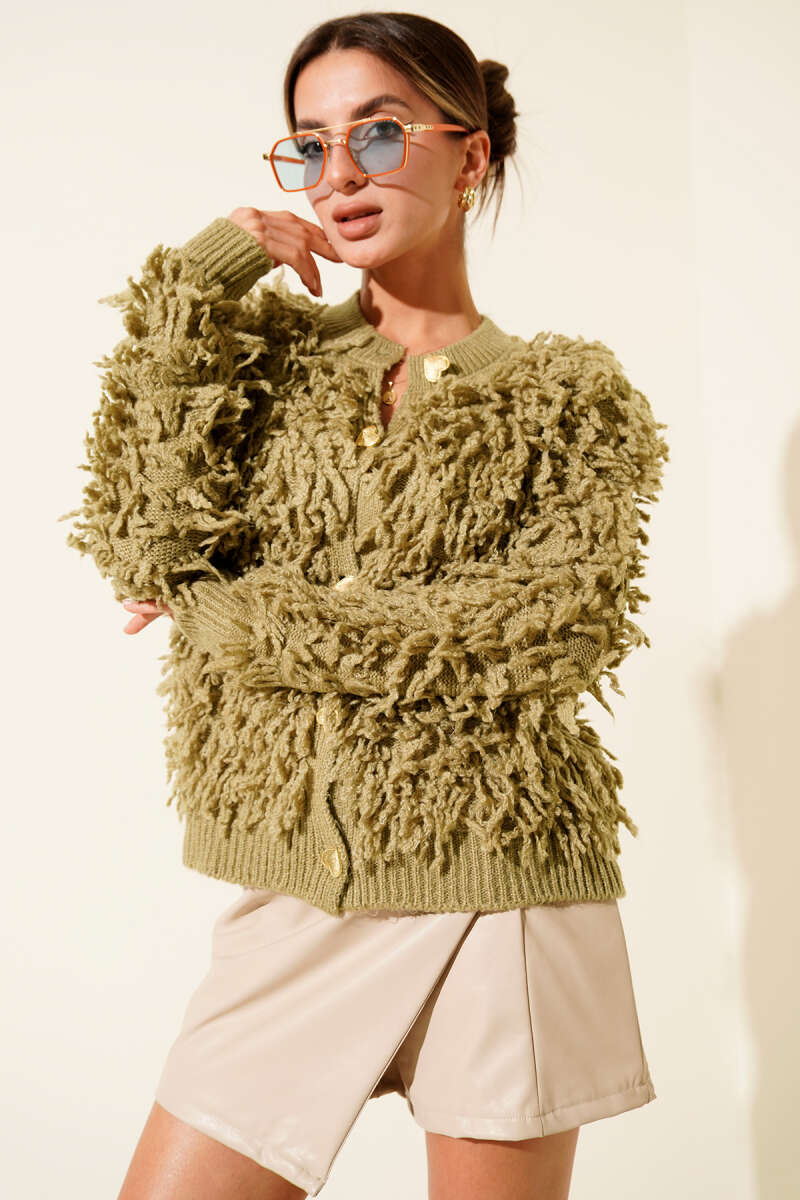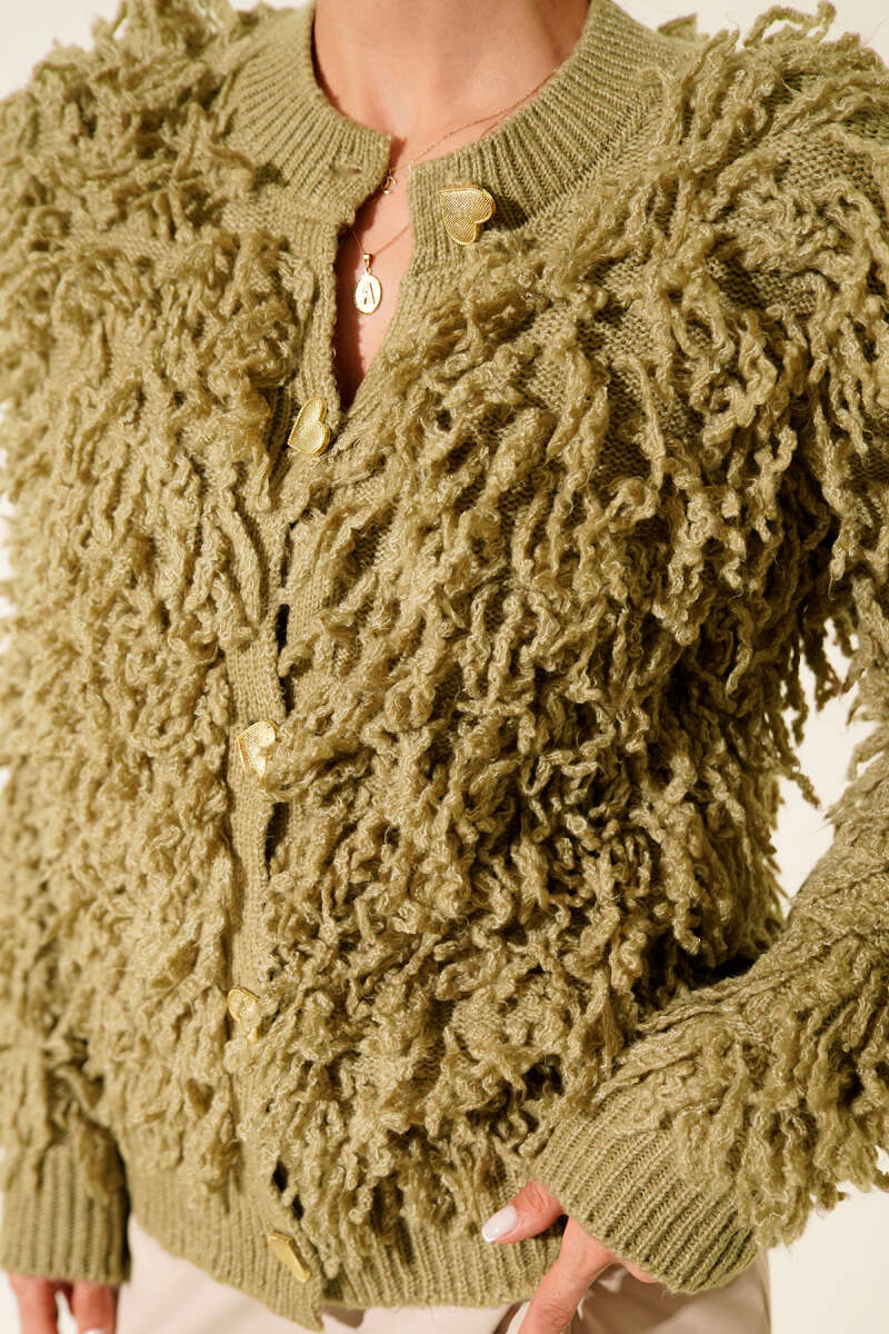 Püsküllü Kalp Düğmeli Hırka Ekru