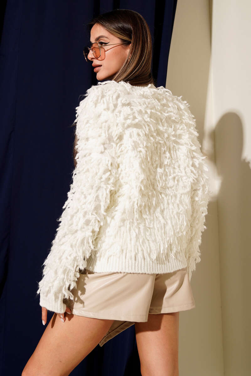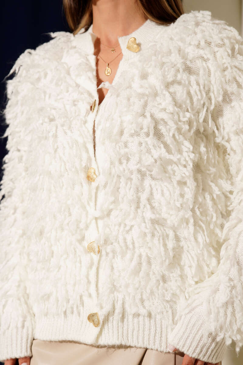 Püsküllü Kalp Düğmeli Hırka Ekru