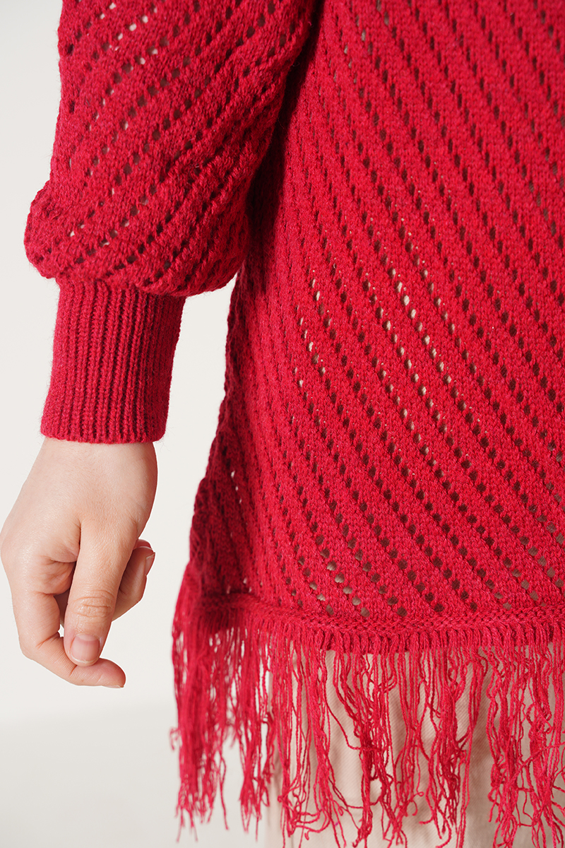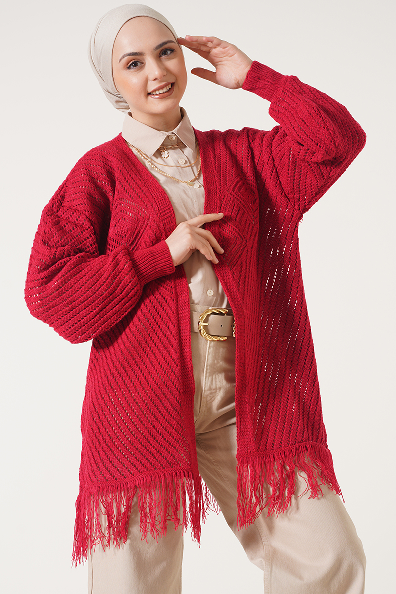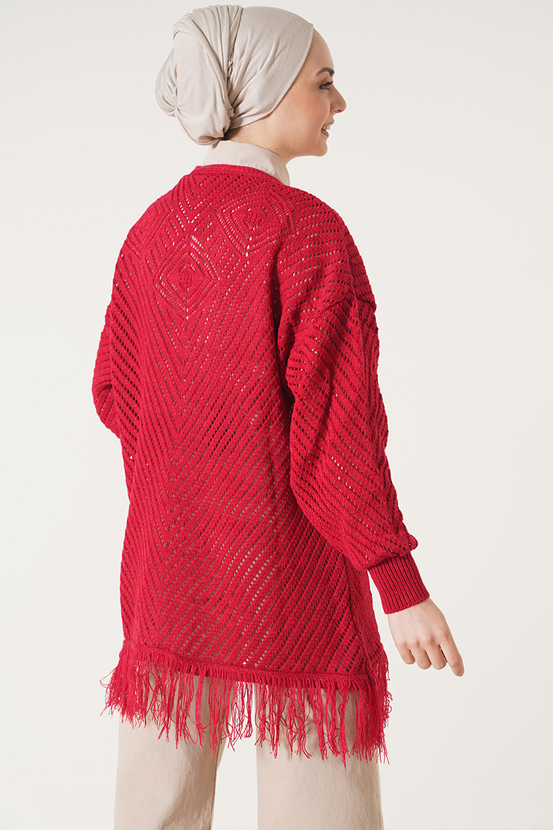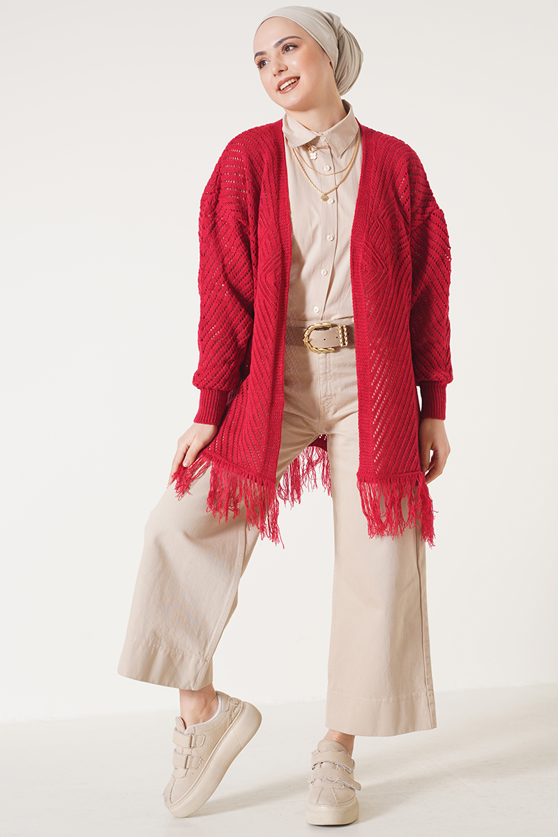 Püsküllü Kırmızı Hırka