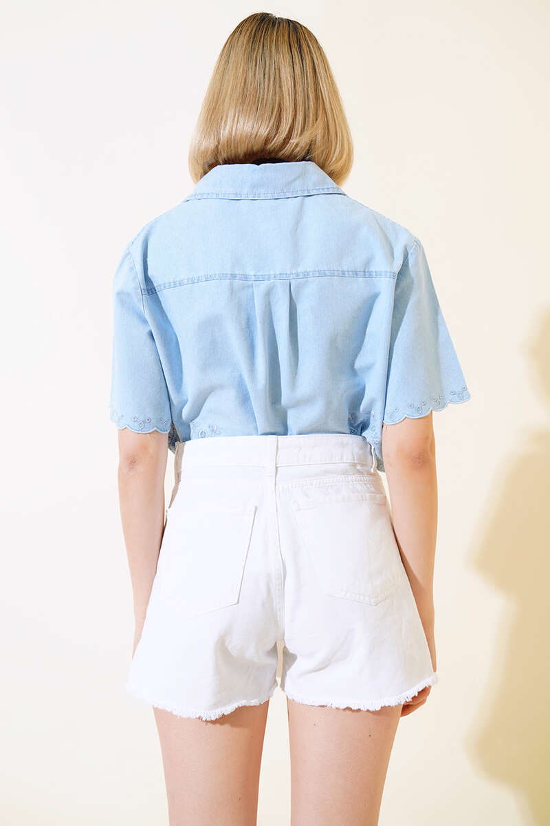 Yeni sezon şort etek modelimiz oldukça şıktır. Şortumuzun etek ucu püsküllüdür. Beli düğmeli ve fermuarlıdır. İki önünde iki arkasında cebi vardır. Şık ve zarif şort eteğimiz kombinlerinizin vazgeçilmezi olacaktır.