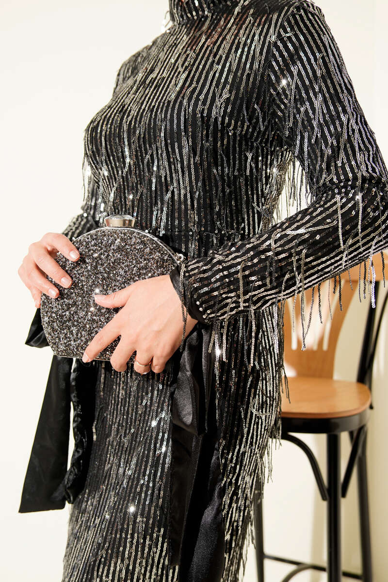 Kol Ucu Tüylü Kemerli Elbise Kırmızı