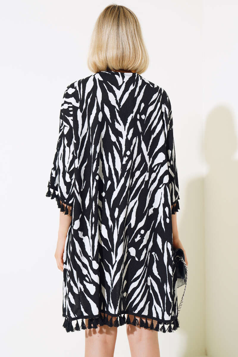 Peluş Yaka Kemerli Kaşe Panço Siyah