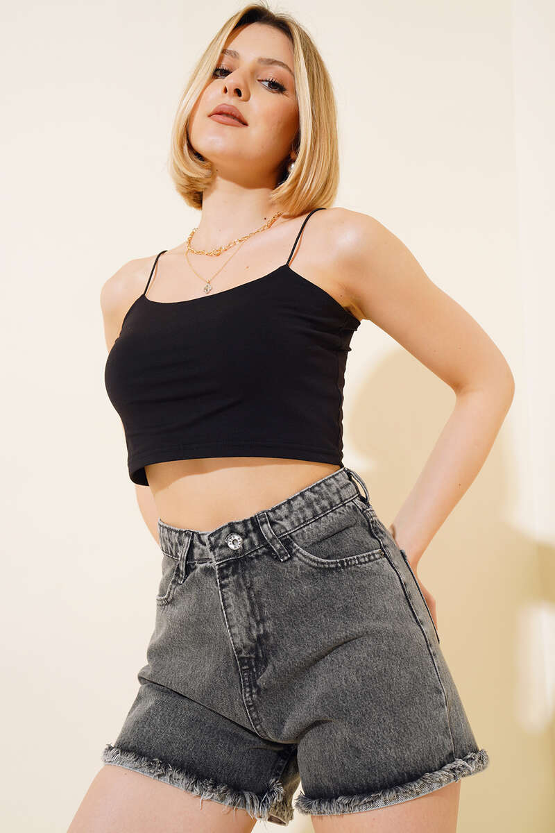 Yeni sezon kot şort modelimiz oldukça şıktır. Şortumuzun paçaları püsküllü modeldir. Ters paçadır. İki önde iki arkada cebi vardır. beli düğmeli ve fermuarlıdır. Belinde beş adet kemer köprüsü vardır. Yaz ve bahar aylarının vazgeçilmez parçası olacaktır.