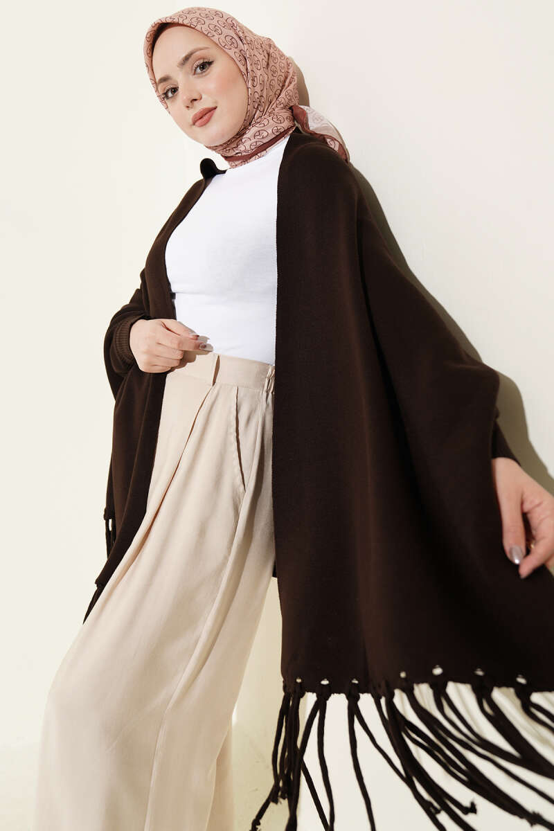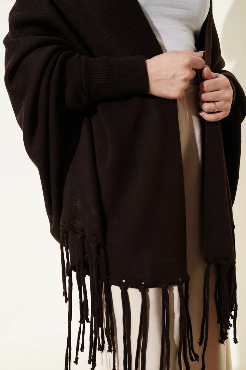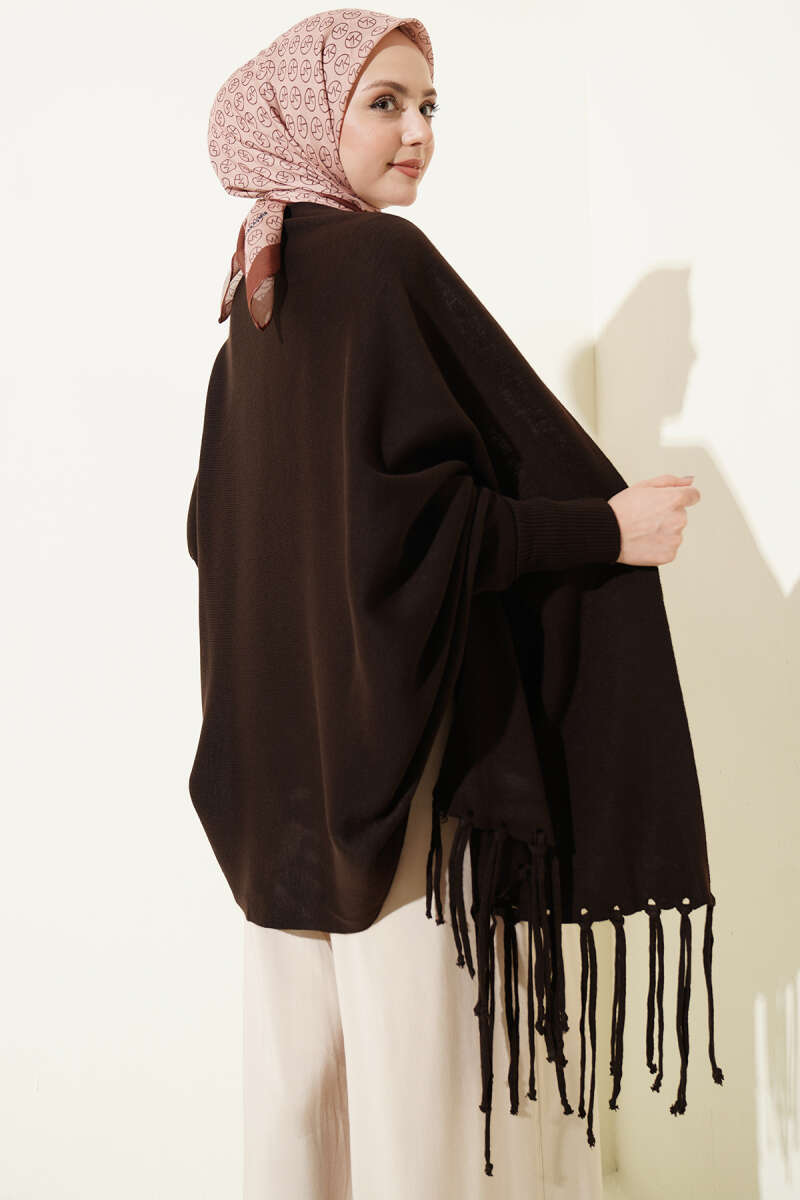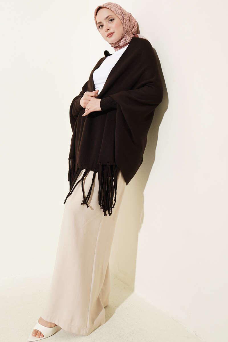 Püsküllü Triko Panço Kahve