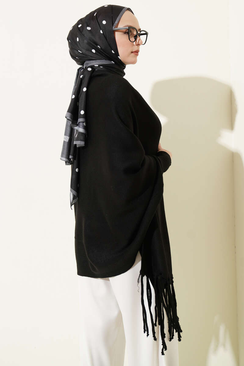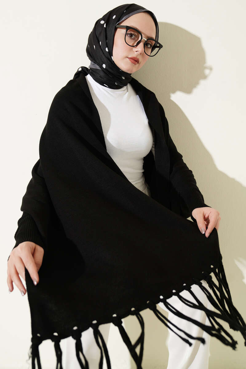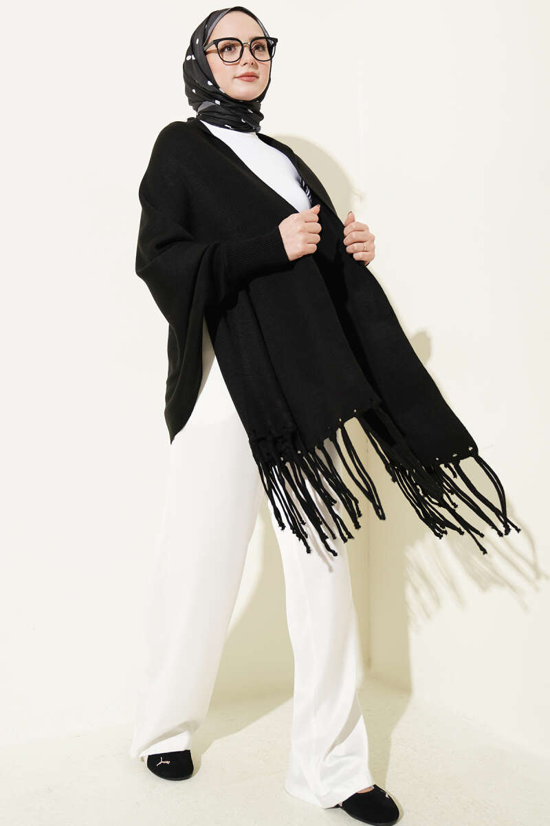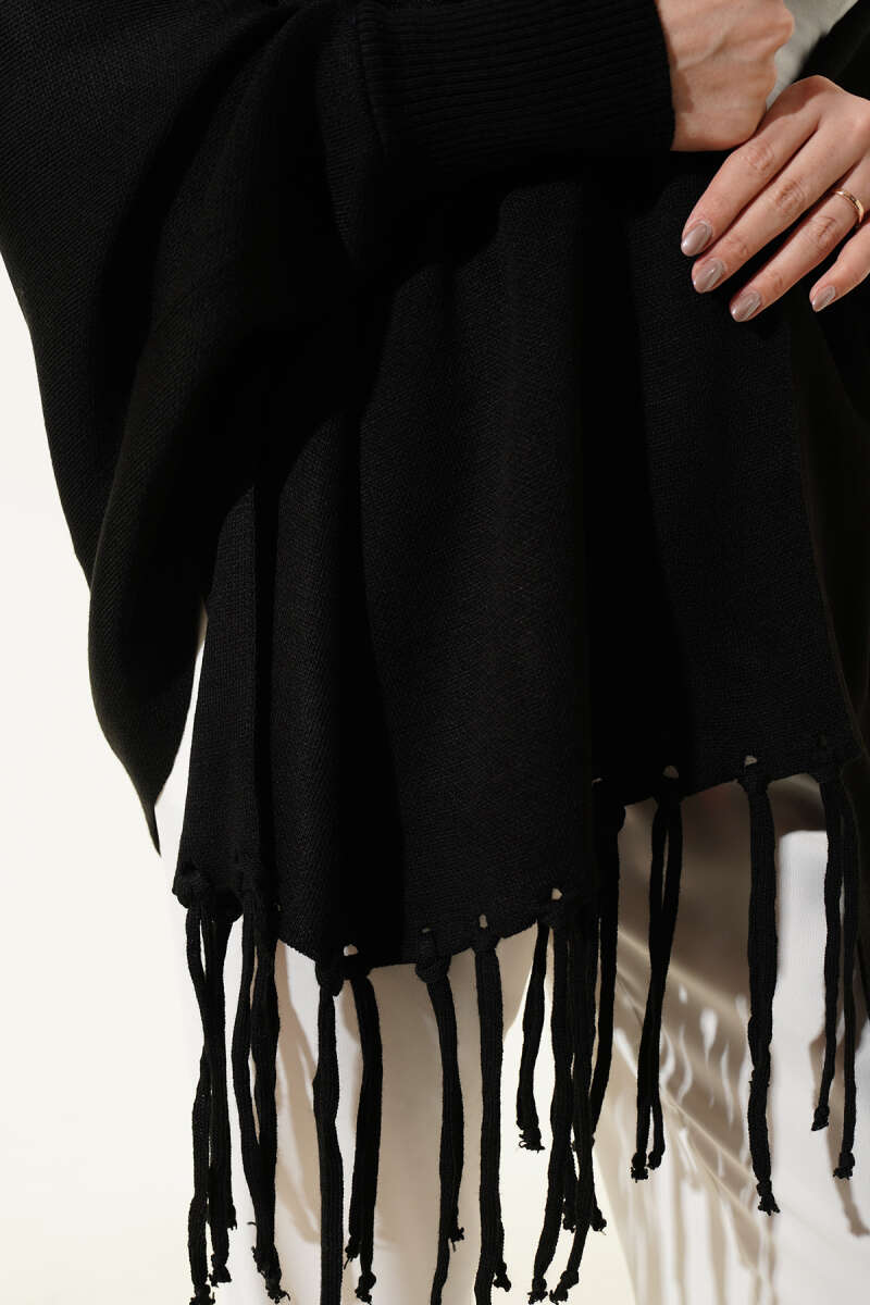 Püsküllü Triko Panço Siyah