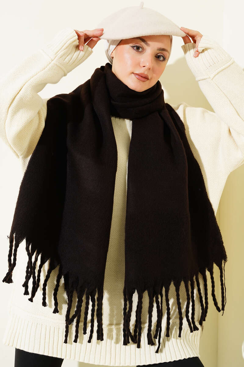 Püsküllü Yumoş Omuz Şalı Kahve