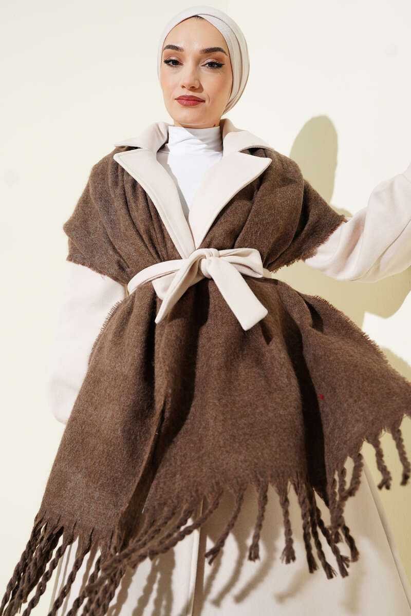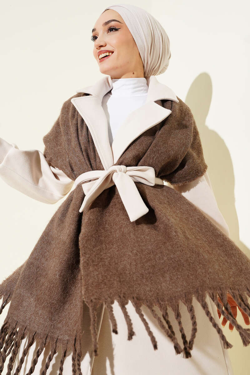 Püsküllü Yumoş Omuz Şalı Vizon