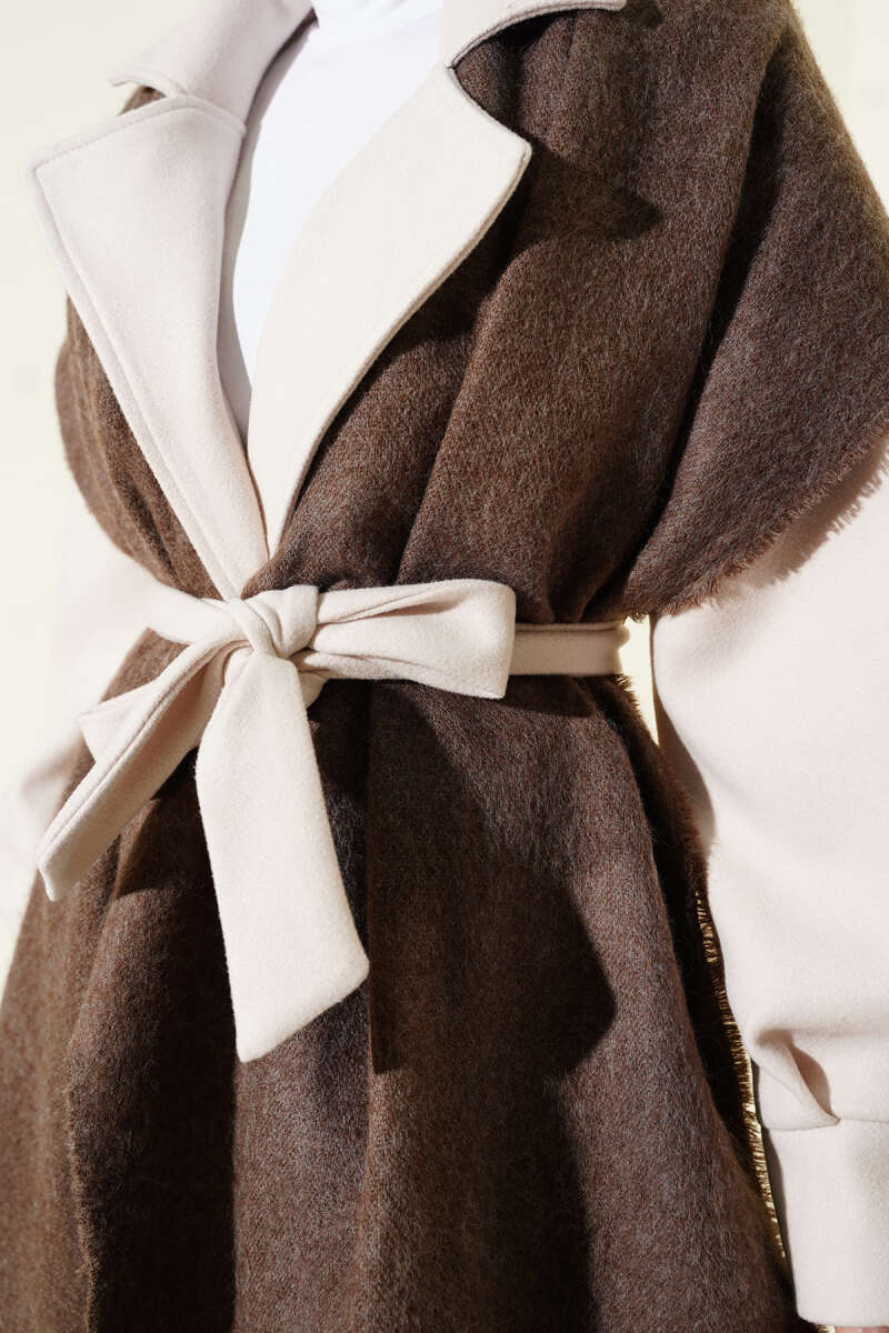 Bilekleri Lastikli Kaşe Kaban Bej