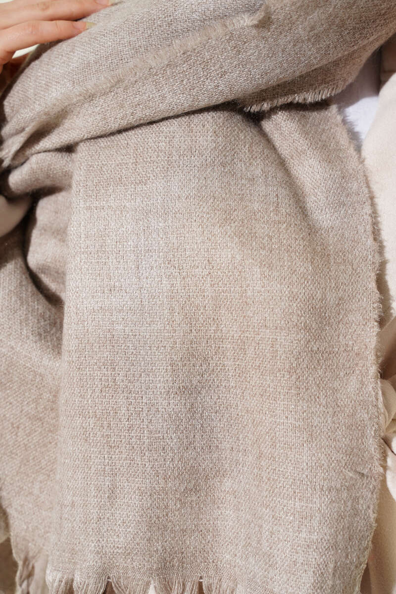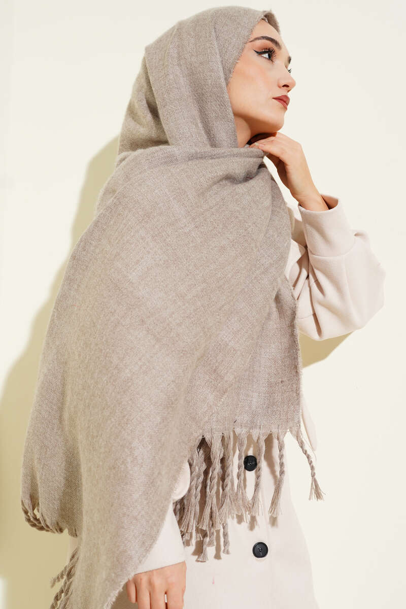 Püsküllü Yumoş Omuz Şalı Ekru