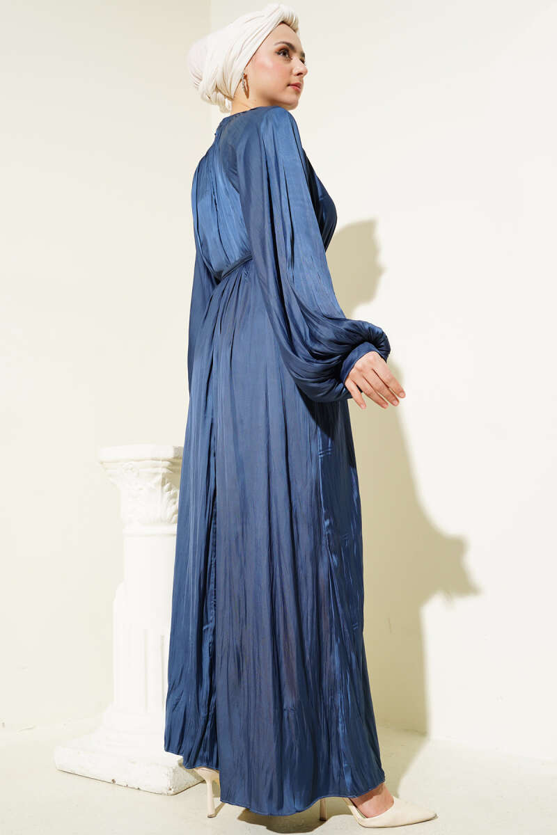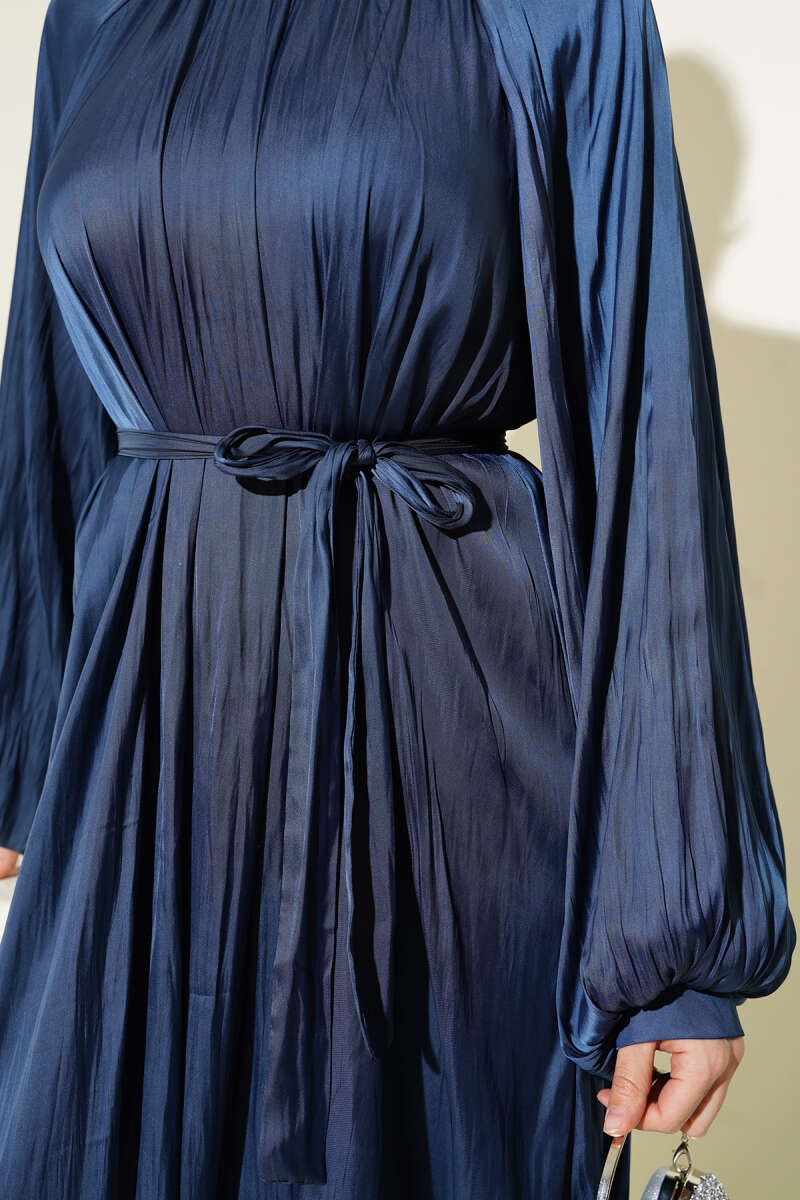 Omuz Pelerinli Taş Detaylı Abiye Elbise Lacivert