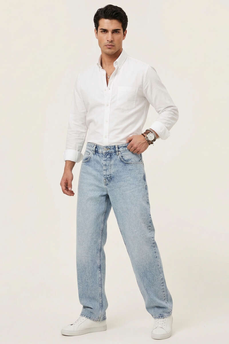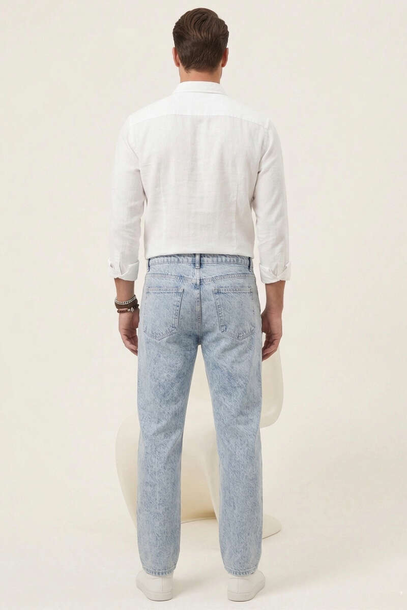 Regular Fit Cepli Erkek Kot Pantolon Açık Mavi